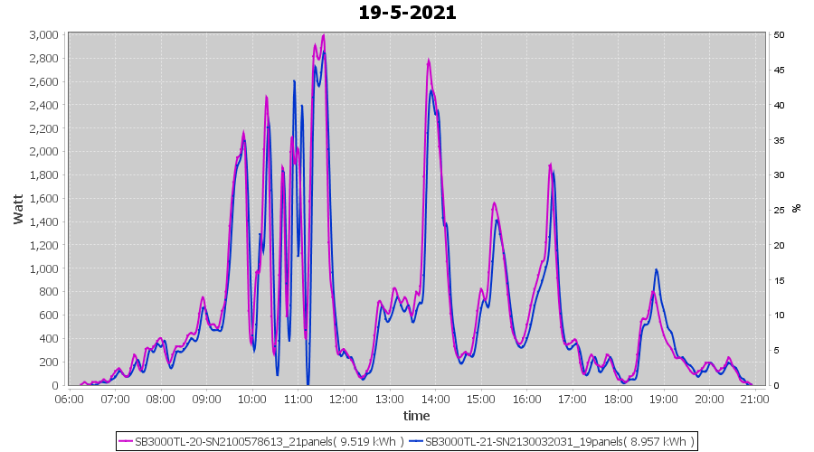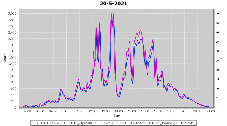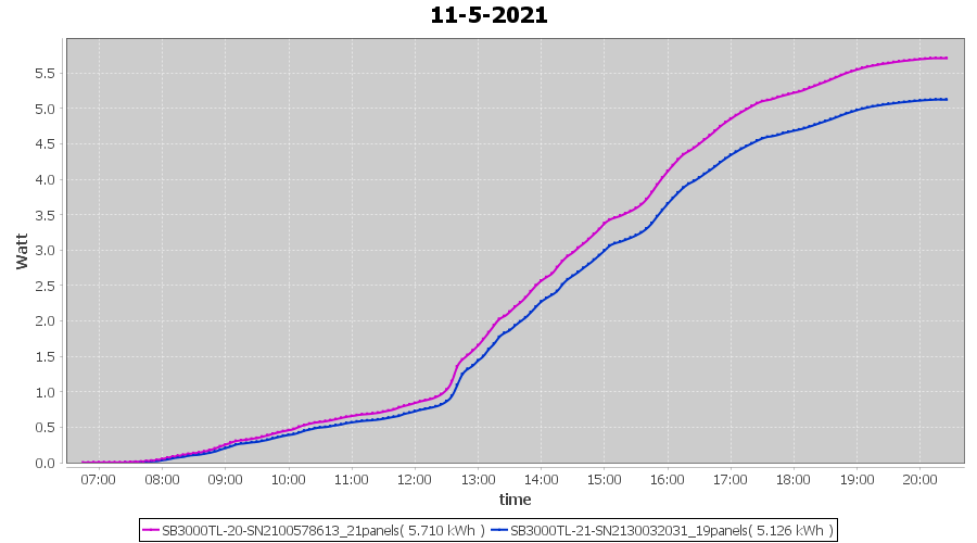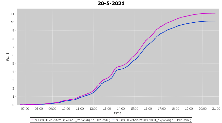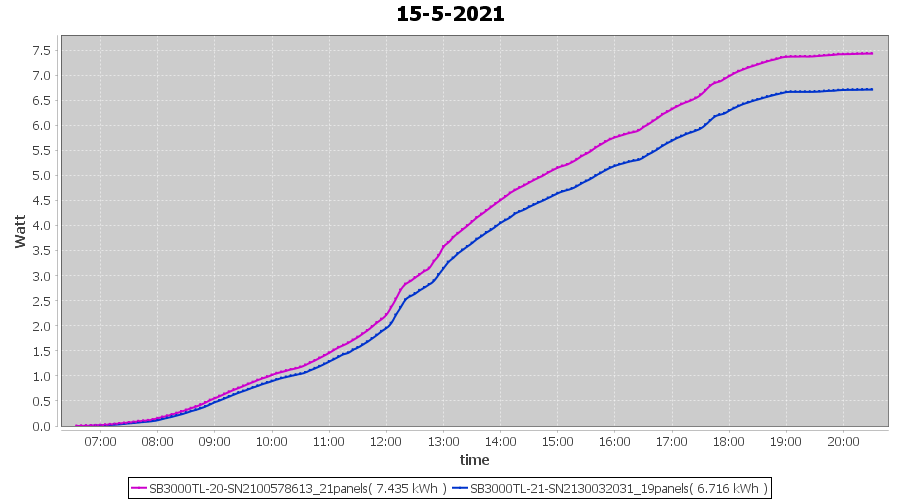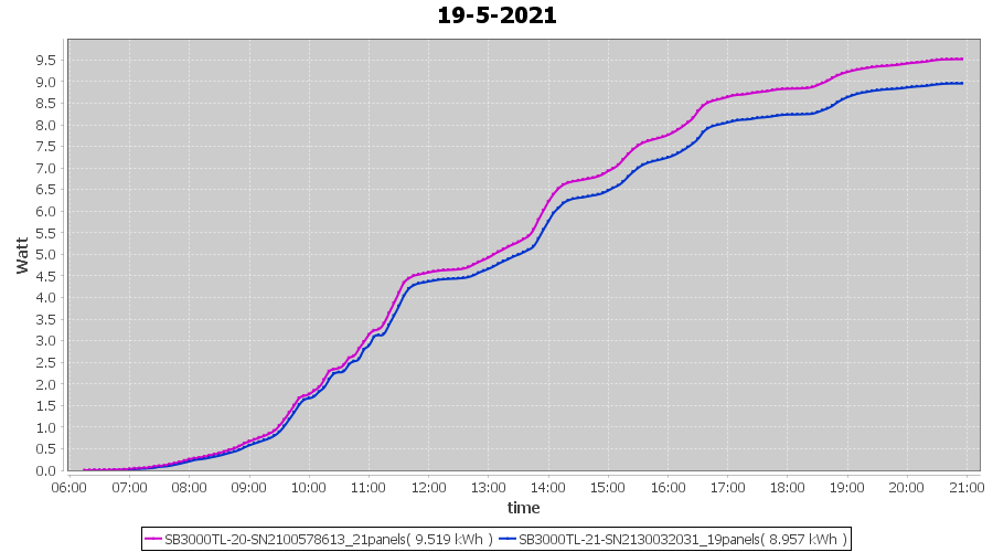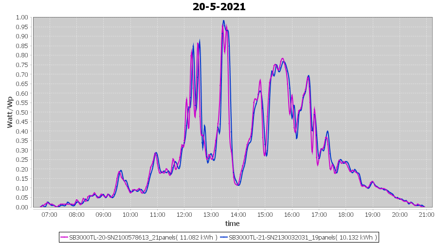 | 20-5-2021 | kWh | Sum | W/Wp | 21.214 | 6000 | 3.5 | 9.811 | € 7.63 | 2.9 |