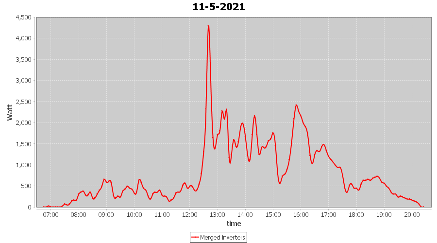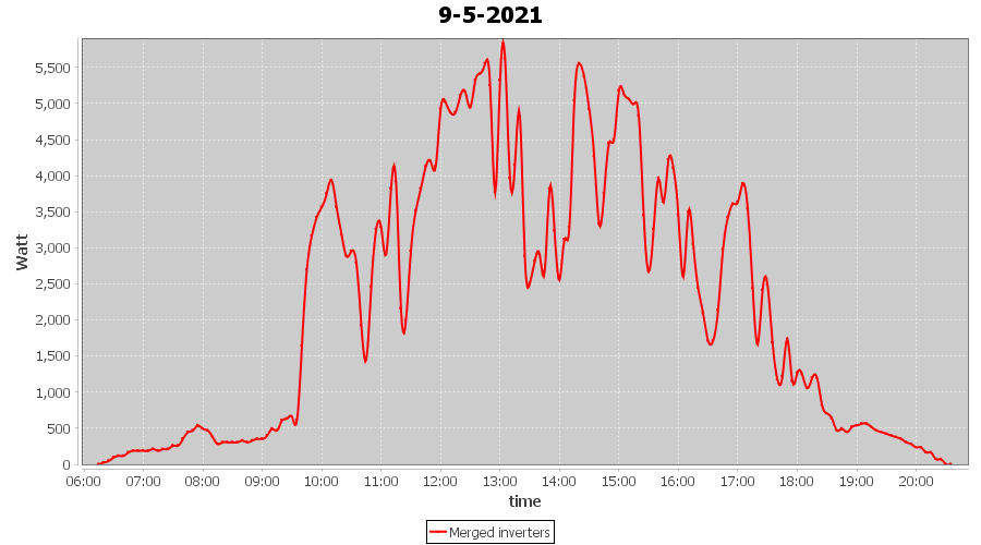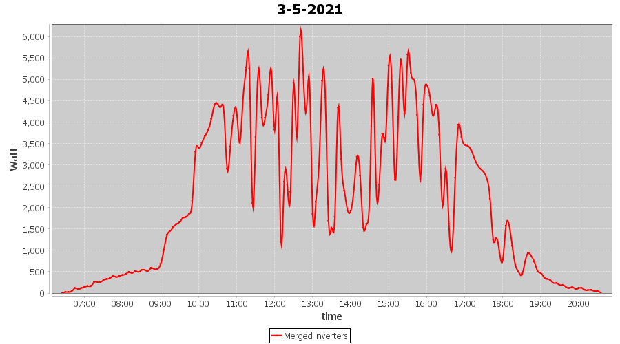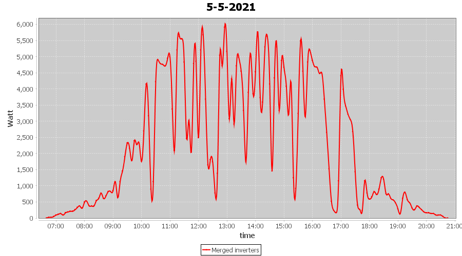 | 5-5-2021 | kWh | Sum | W/Wp | 31.505 | 6000 | 5.3 | 14.571 | € 11.33 | 4.3 |