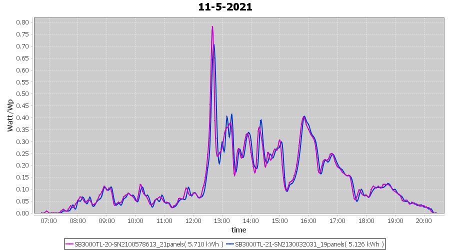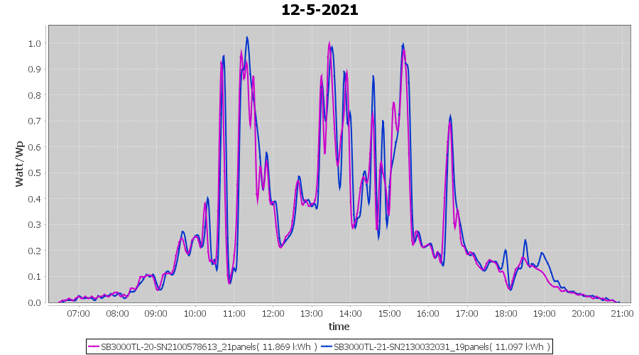 | 12-5-2021 | kWh | Sum | W/Wp | 22.966 | 6000 | 3.8 | 10.622 | € 8.26 | 3.1 |