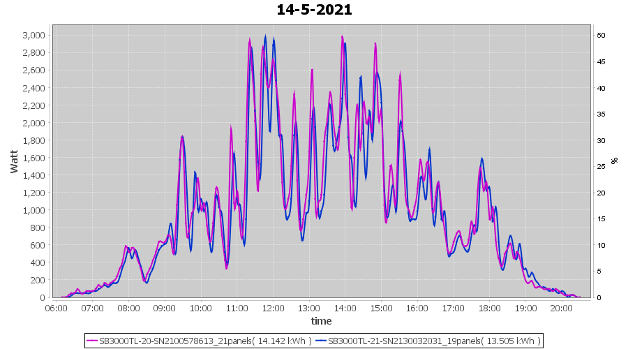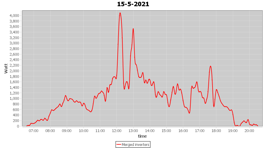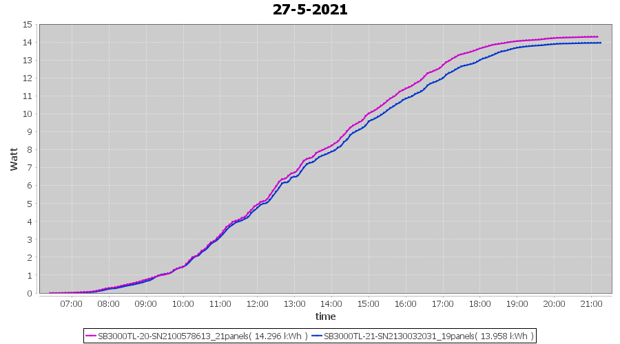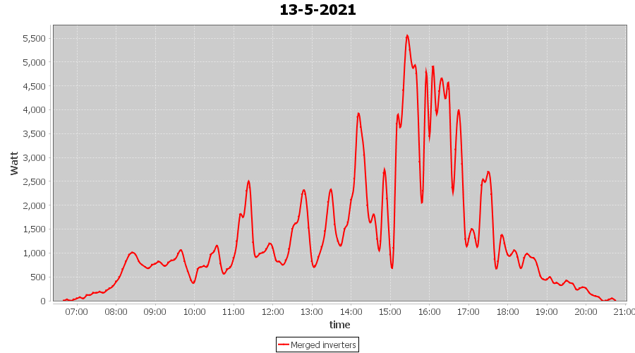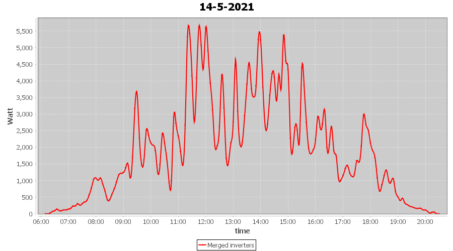 | 14-5-2021 | kWh | Sum | W/Wp | 27.647 | 6000 | 4.6 | 12.787 | € 9.94 | 3.8 |