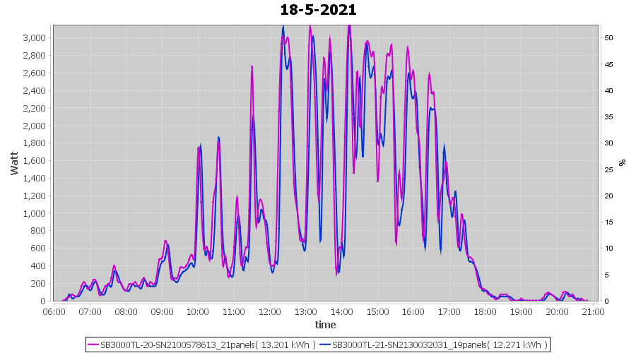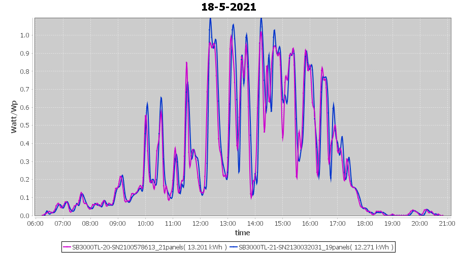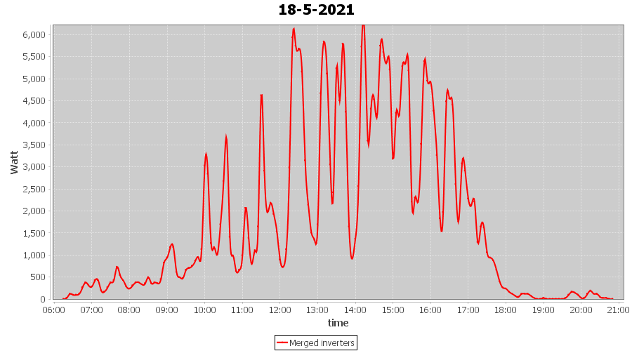 | 18-5-2021 | kWh | Sum | W/Wp | 25.472 | 6000 | 4.2 | 11.781 | € 9.16 | 3.5 |