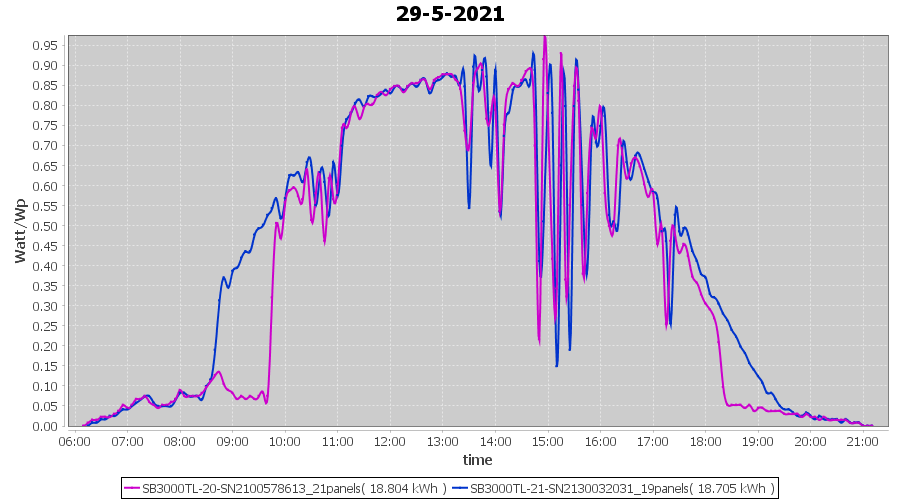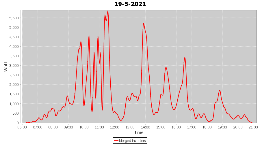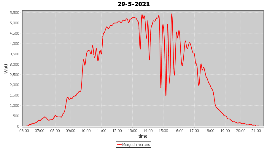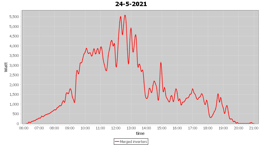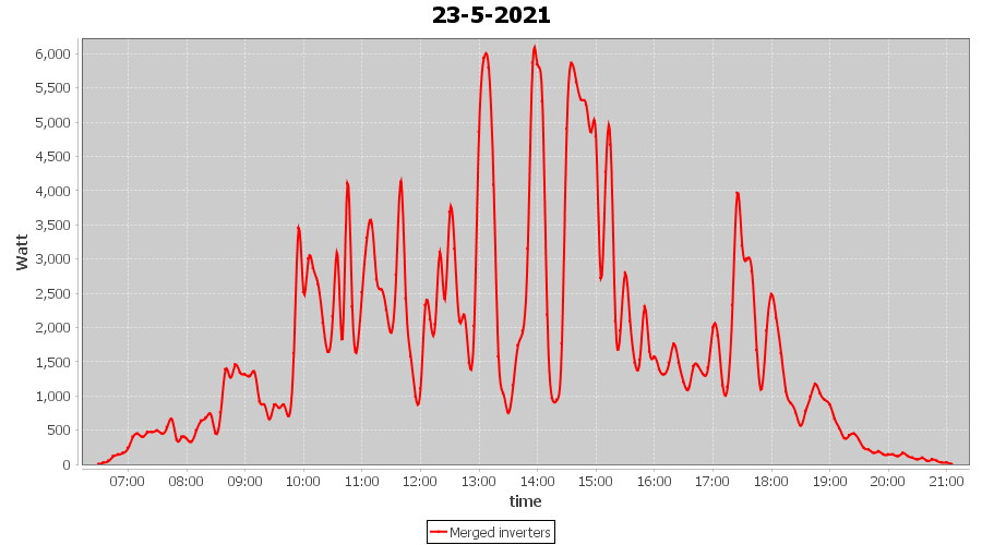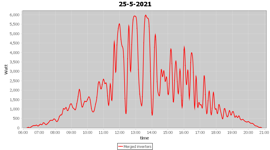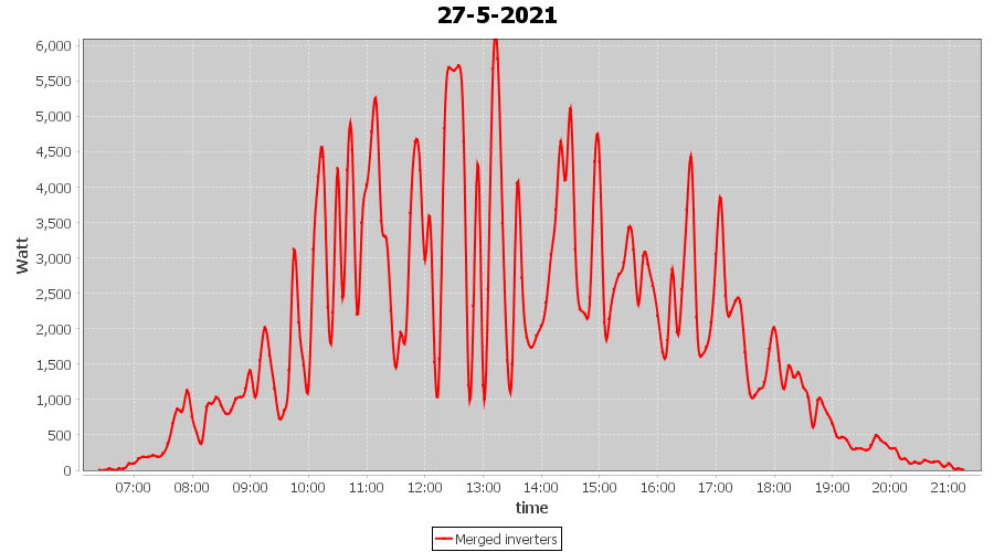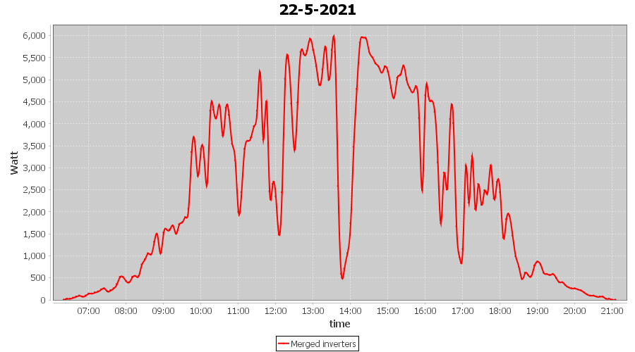 | 22-5-2021 | kWh | Sum | W/Wp | 35.958 | 6000 | 6.0 | 16.631 | € 12.93 | 4.9 |