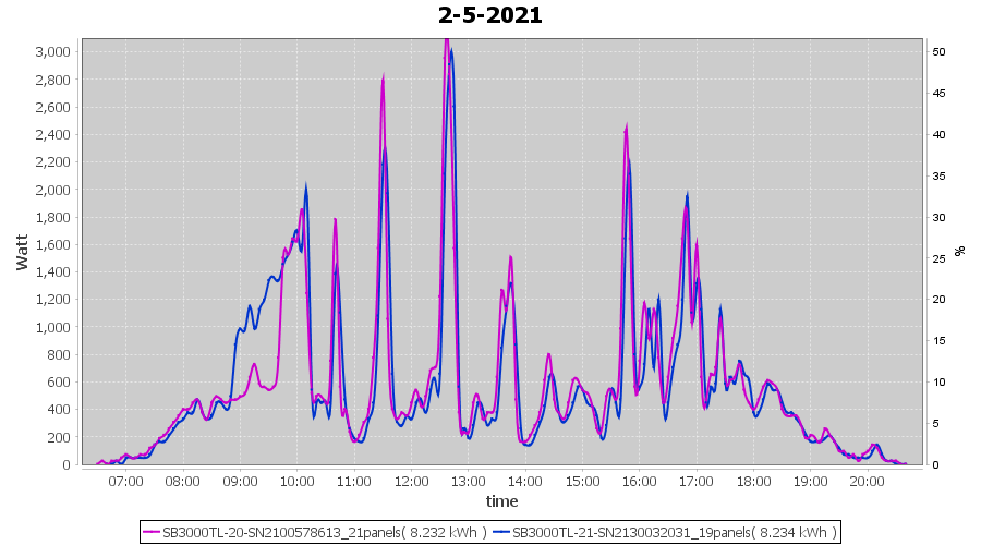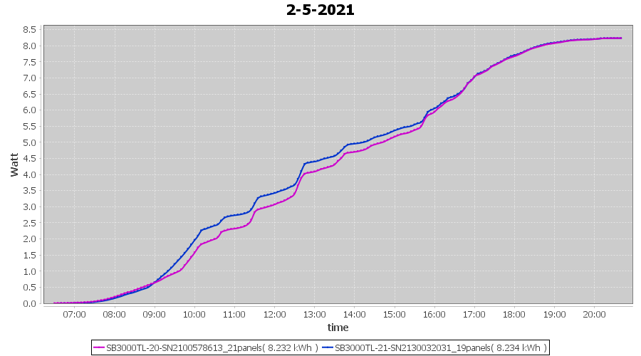 | 2-5-2021 | kWh | Sum | W/Wp | 16.466 | 6000 | 2.7 | 7.616 | € 5.92 | 2.2 |