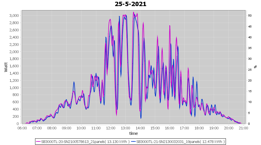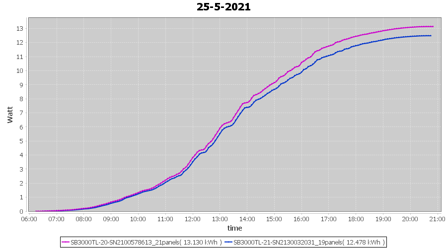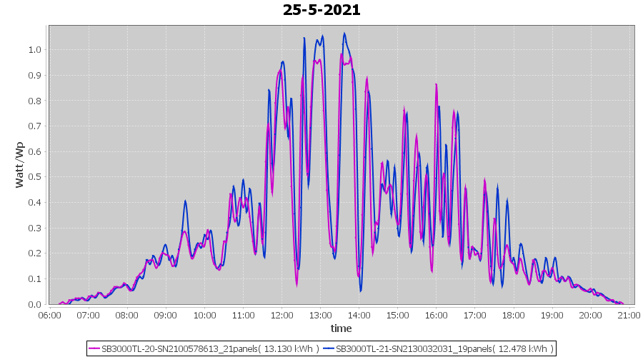 | 25-5-2021 | kWh | Sum | W/Wp | 25.608 | 6000 | 4.3 | 11.844 | € 9.21 | 3.5 |