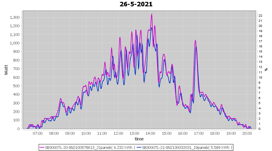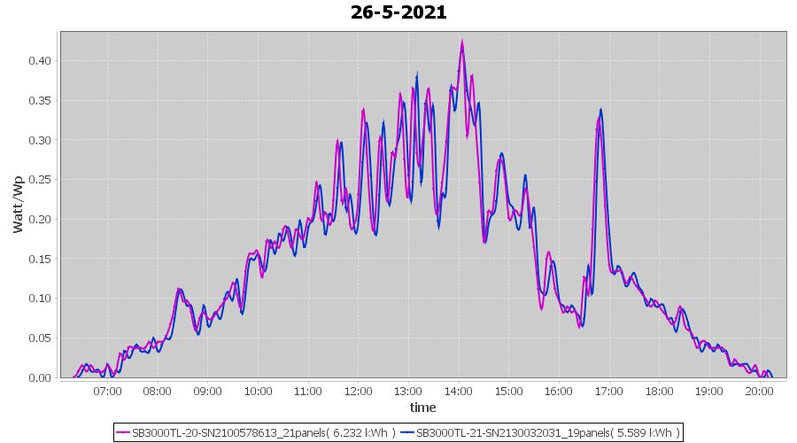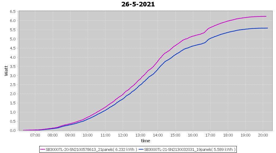 | 26-5-2021 | kWh | Sum | W/Wp | 11.821 | 6000 | 2.0 | 5.467 | € 4.25 | 1.6 |