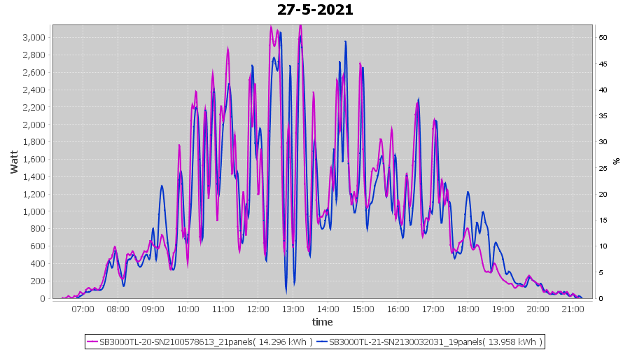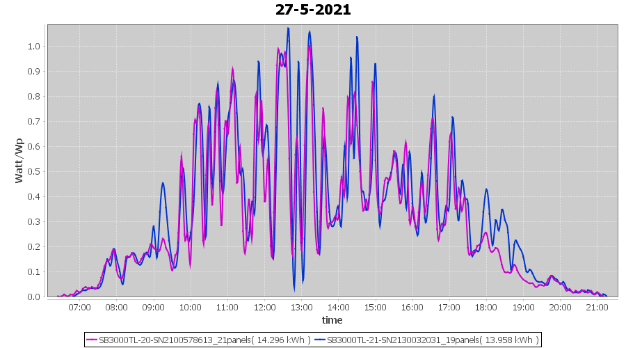 | 27-5-2021 | kWh | Sum | W/Wp | 28.254 | 6000 | 4.7 | 13.067 | € 10.16 | 3.8 |