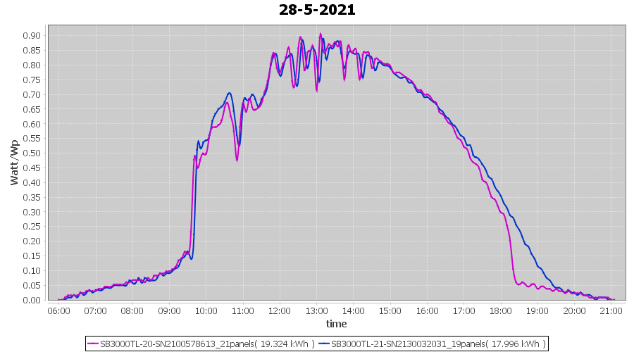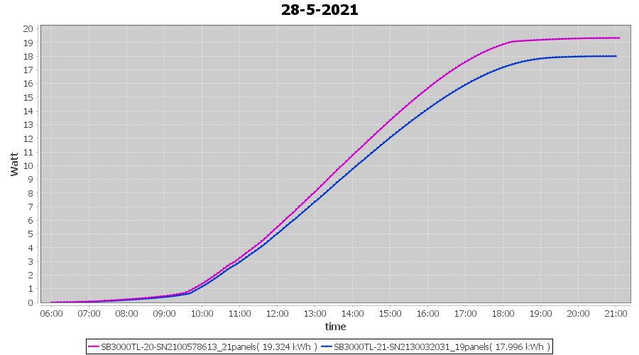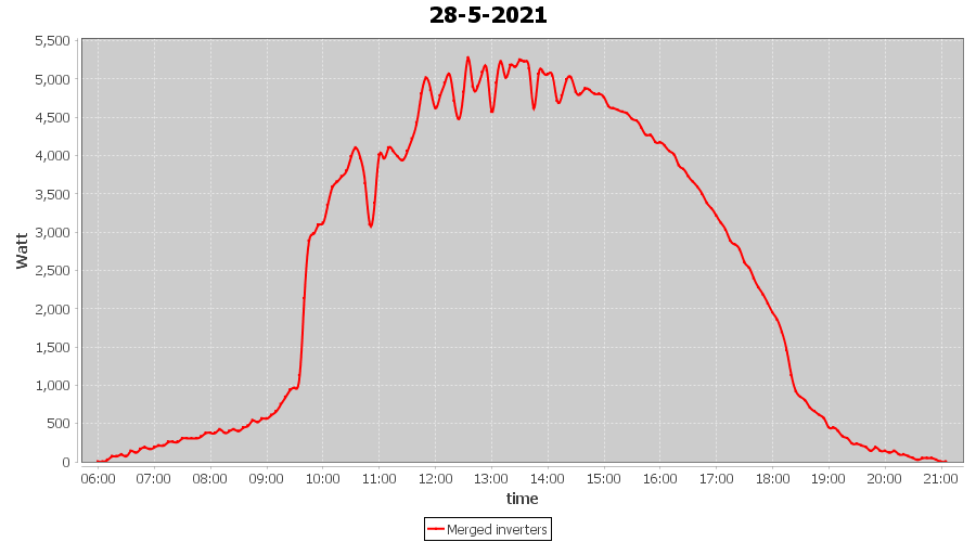 | 28-5-2021 | kWh | Sum | W/Wp | 37.320 | 6000 | 6.2 | 17.260 | € 13.42 | 5.1 |