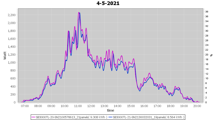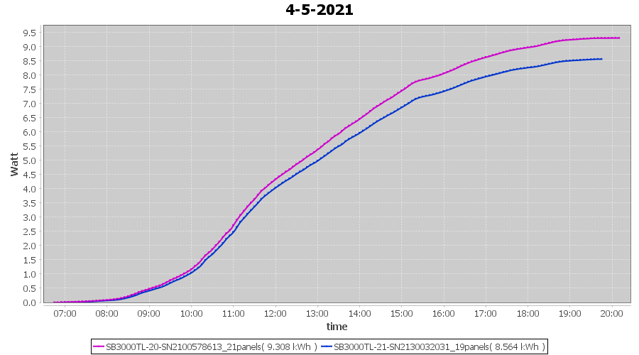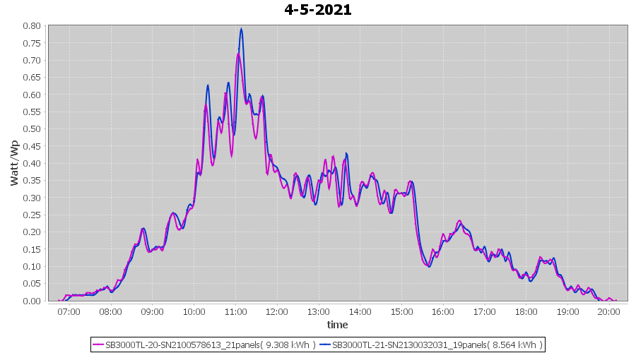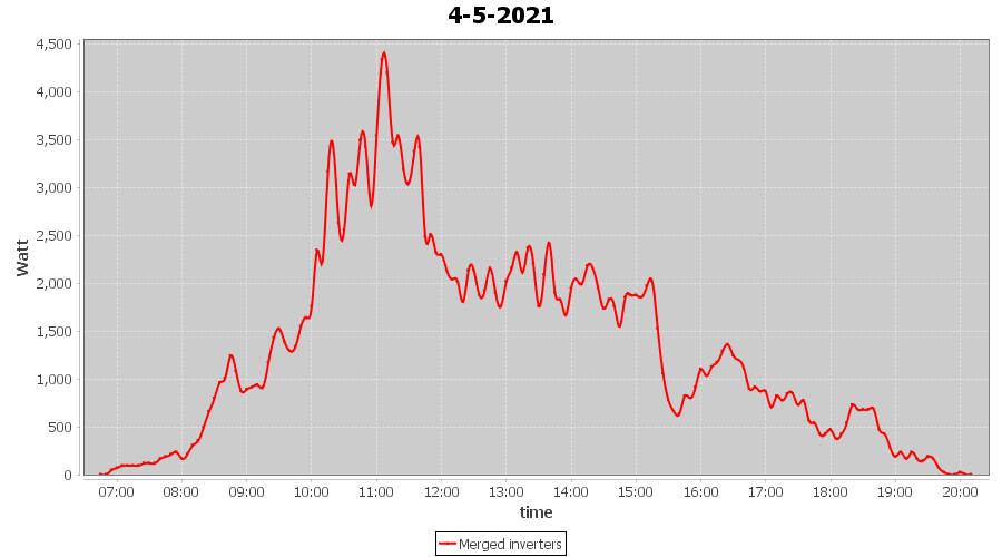 | 4-5-2021 | kWh | Sum | W/Wp | 17.872 | 6000 | 3.0 | 8.266 | € 6.43 | 2.4 |