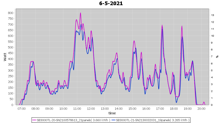 | 6-5-2021 | kWh | Sum | W/Wp | 6.925 | 6000 | 1.2 | 3.203 | € 2.49 | 0.9 |