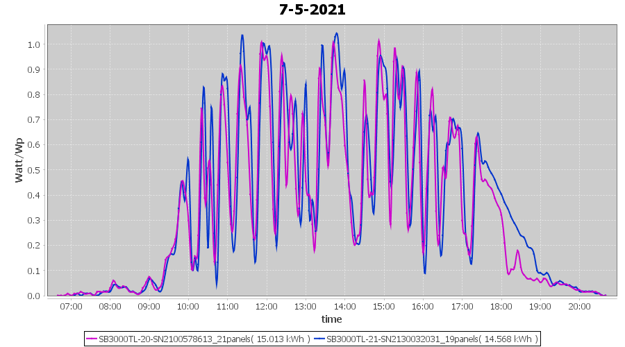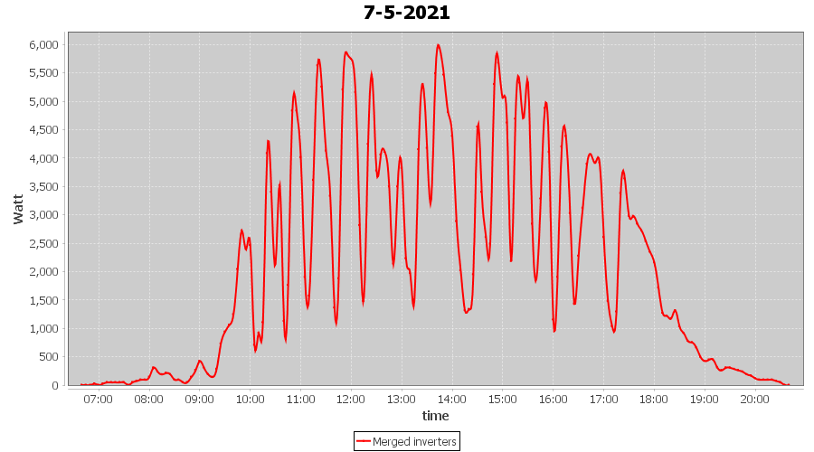 | 7-5-2021 | kWh | Sum | W/Wp | 29.581 | 6000 | 4.9 | 13.681 | € 10.63 | 4.0 |