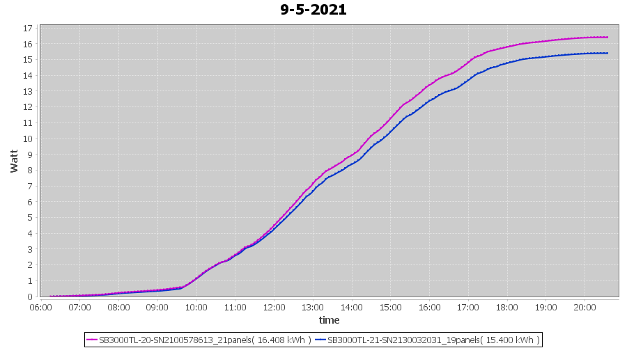 | 9-5-2021 | kWh | Sum | W/Wp | 31.808 | 6000 | 5.3 | 14.711 | € 11.44 | 4.3 |