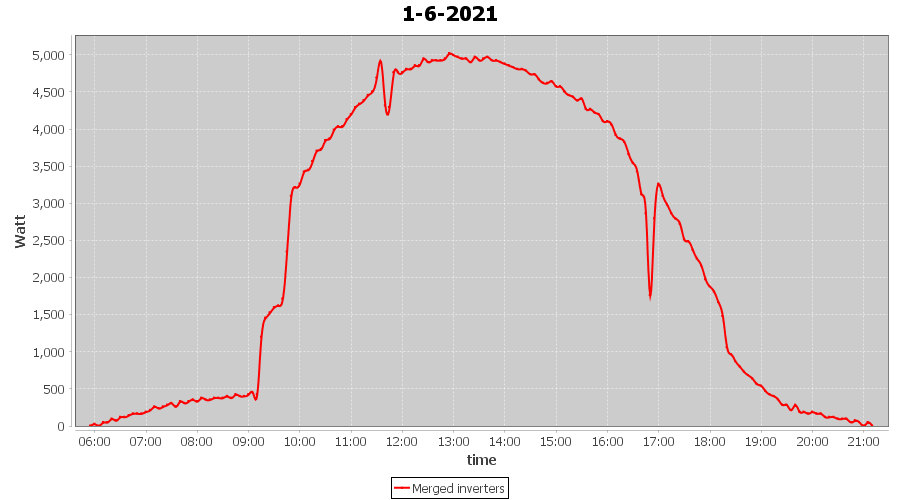 | 1-6-2021 | kWh | Sum | W/Wp | 37.056 | 6000 | 6.2 | 17.138 | € 13.32 | 4.8 |