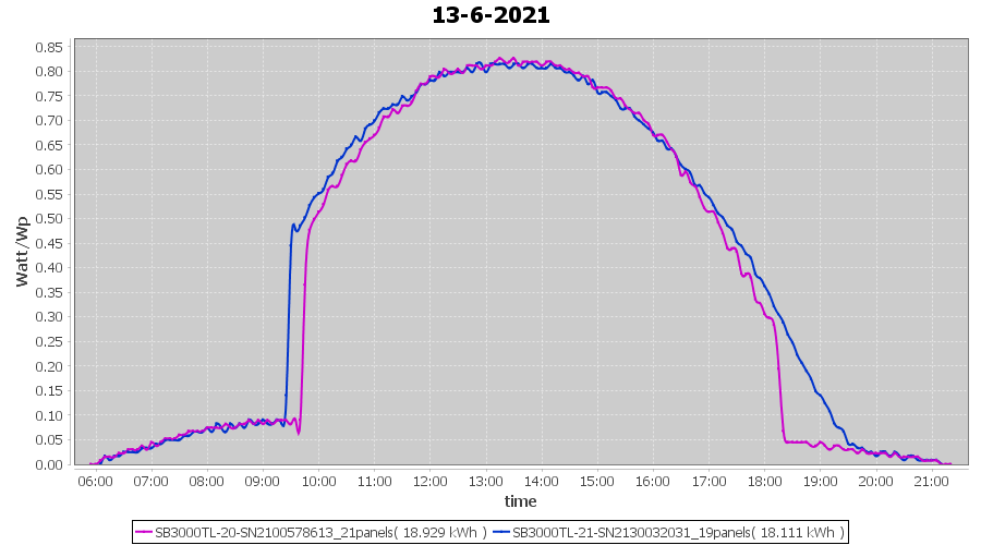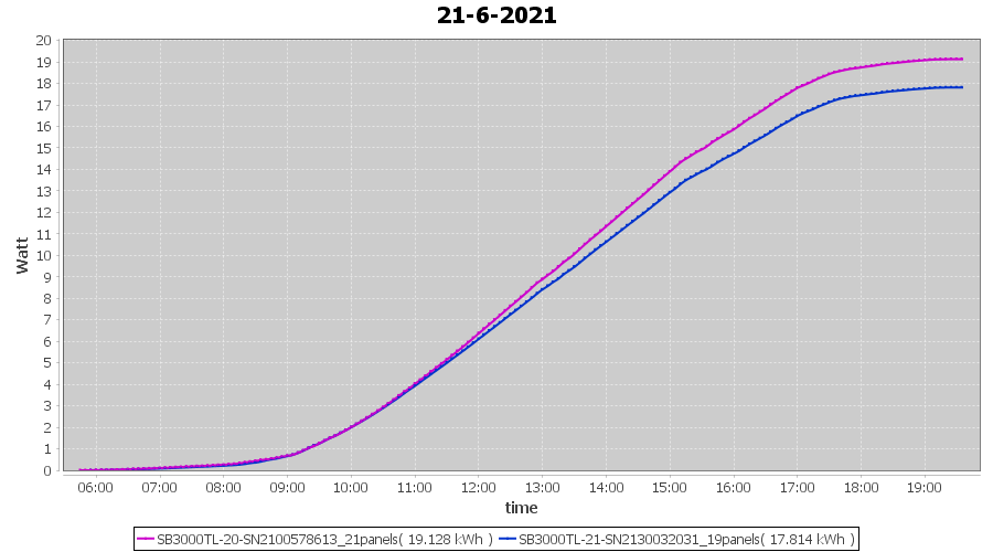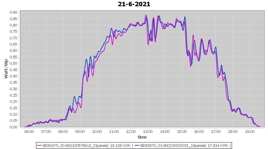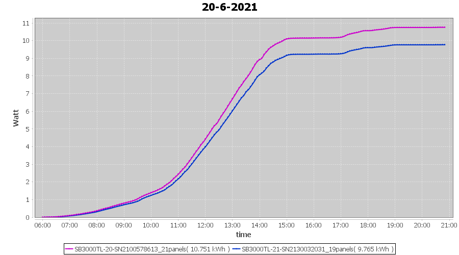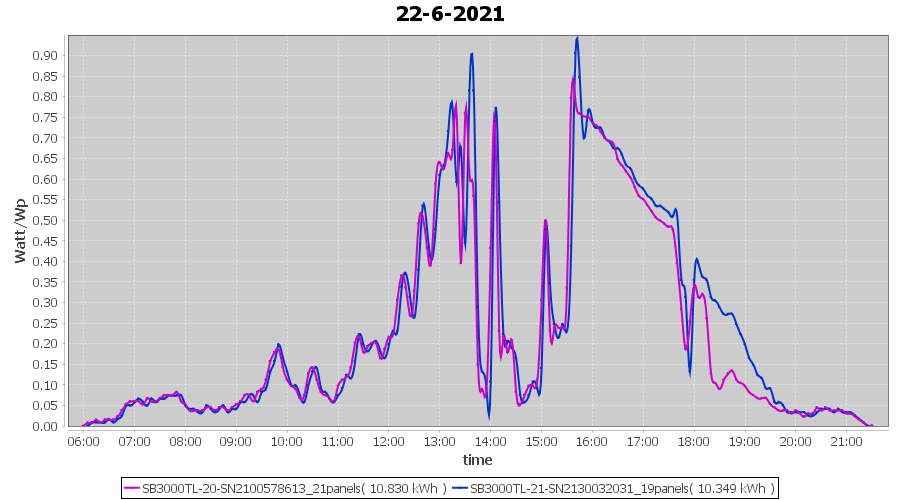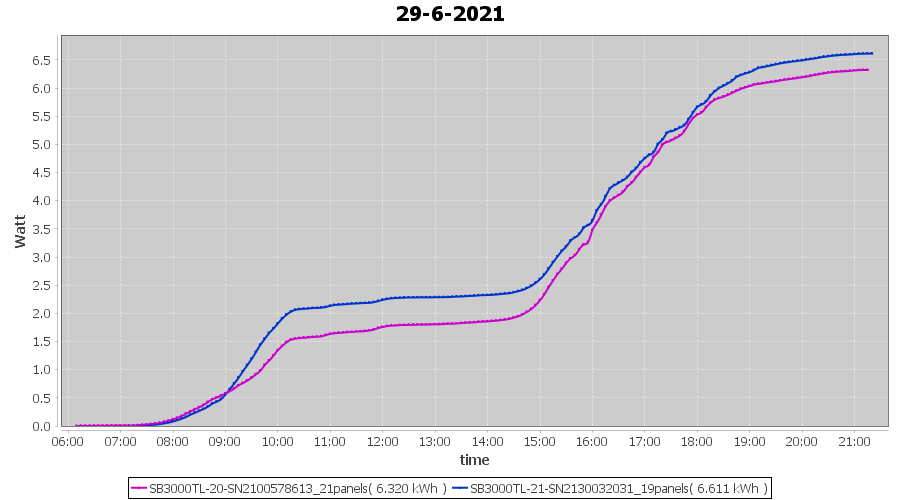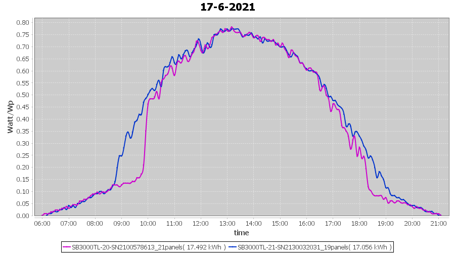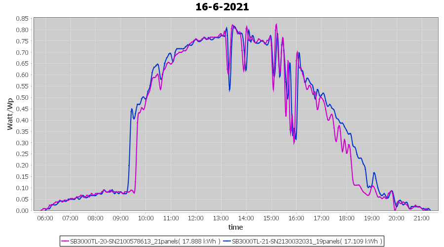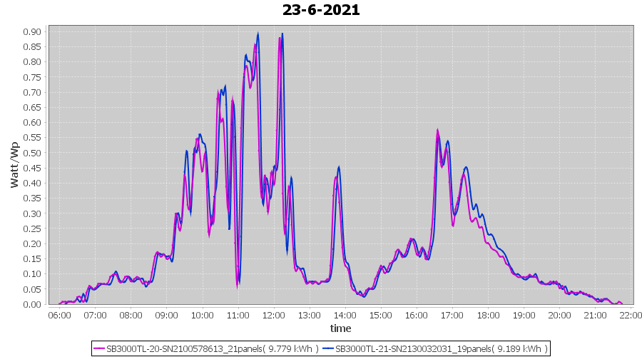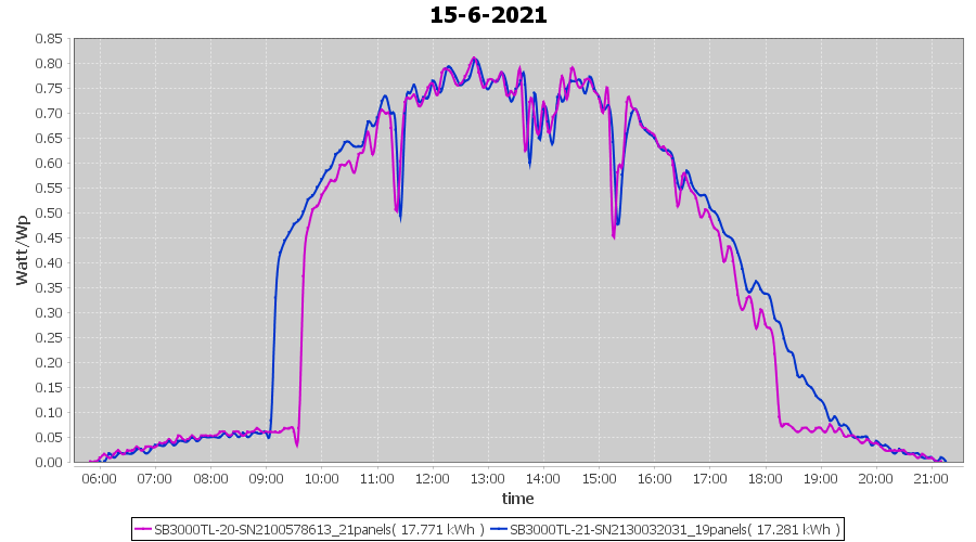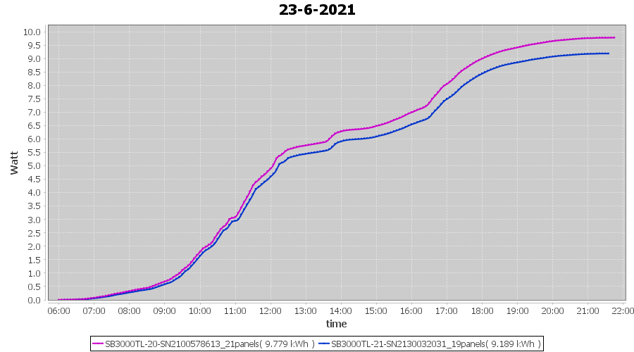 | 22-6-2021 | kWh | Sum | W/Wp | 21.179 | 6000 | 3.5 | 9.795 | € 7.61 | 2.7 |