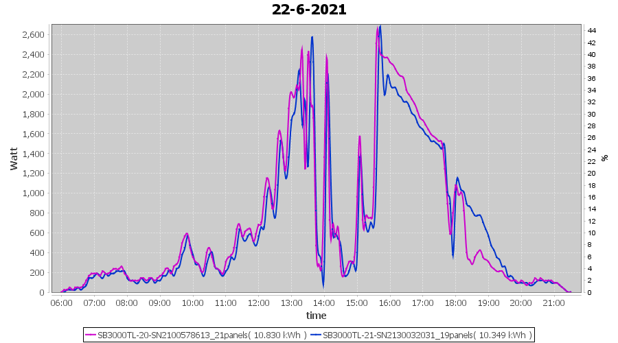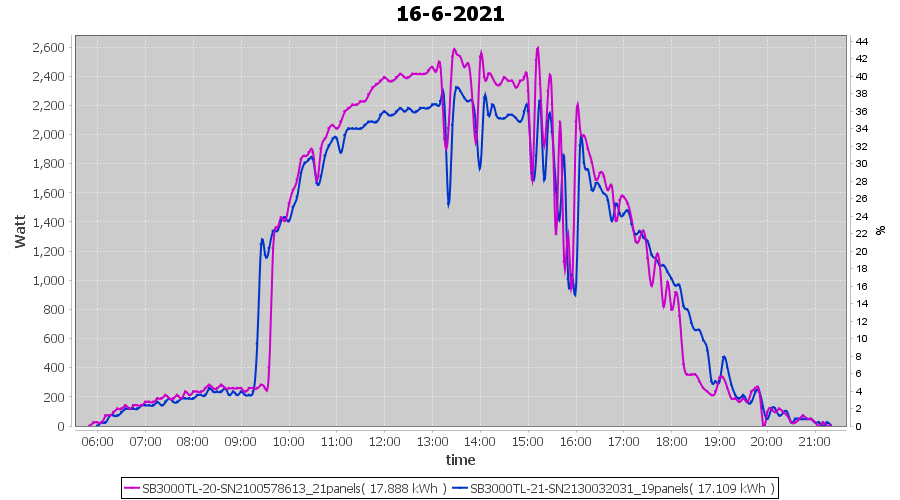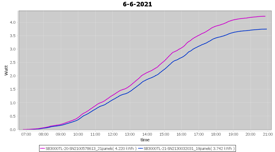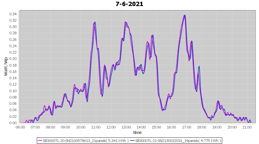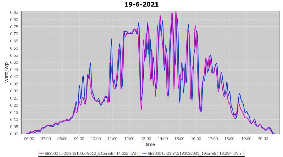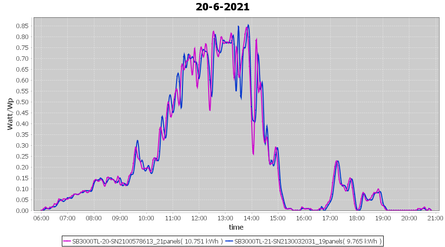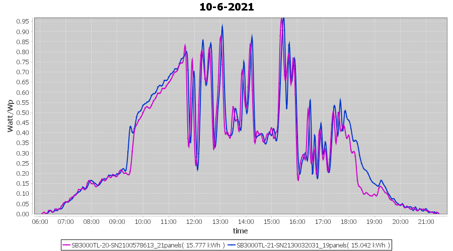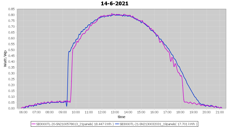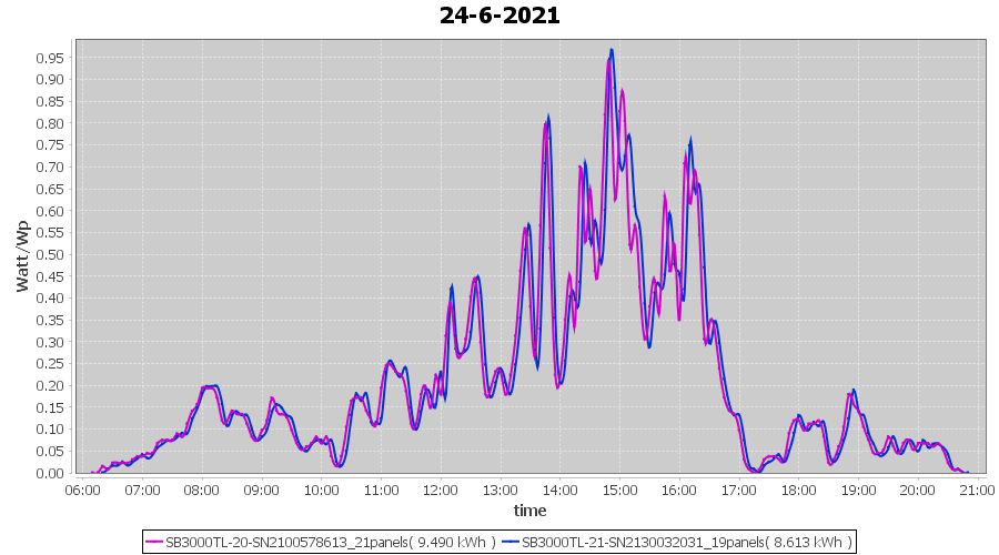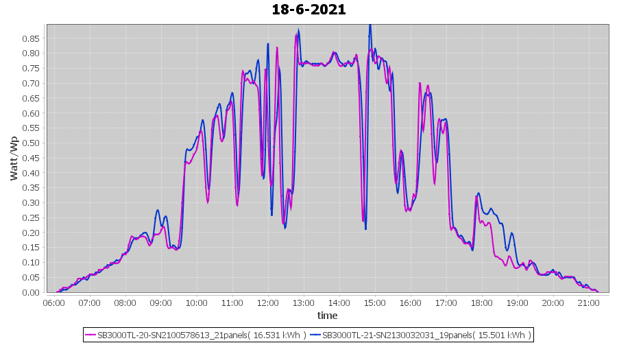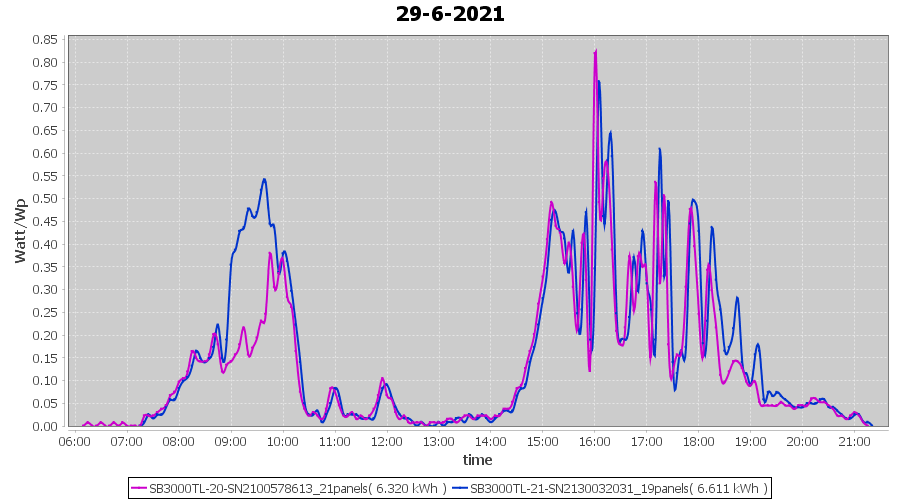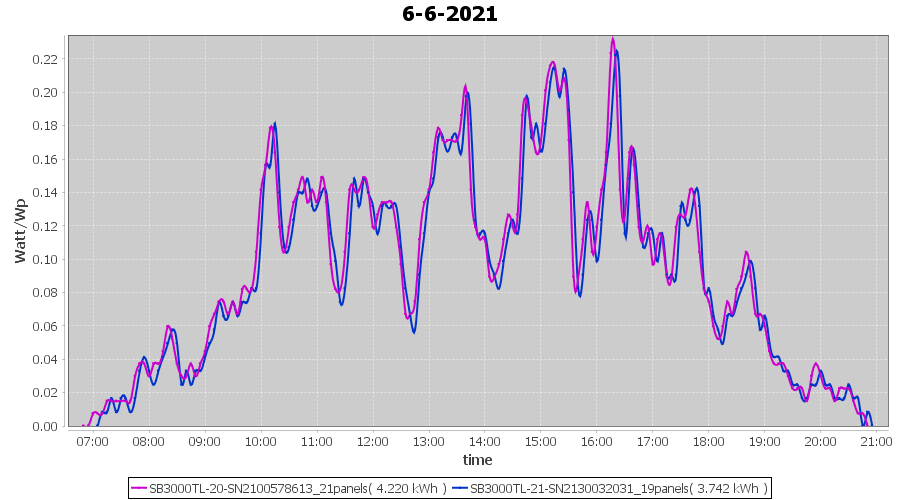 | 22-6-2021 | kWh | Sum | W/Wp | 21.179 | 6000 | 3.5 | 9.795 | € 7.61 | 2.7 |