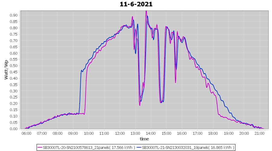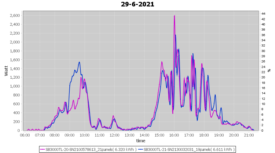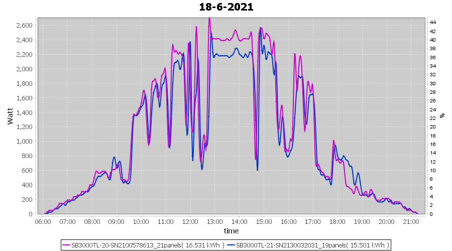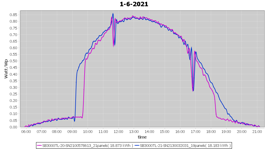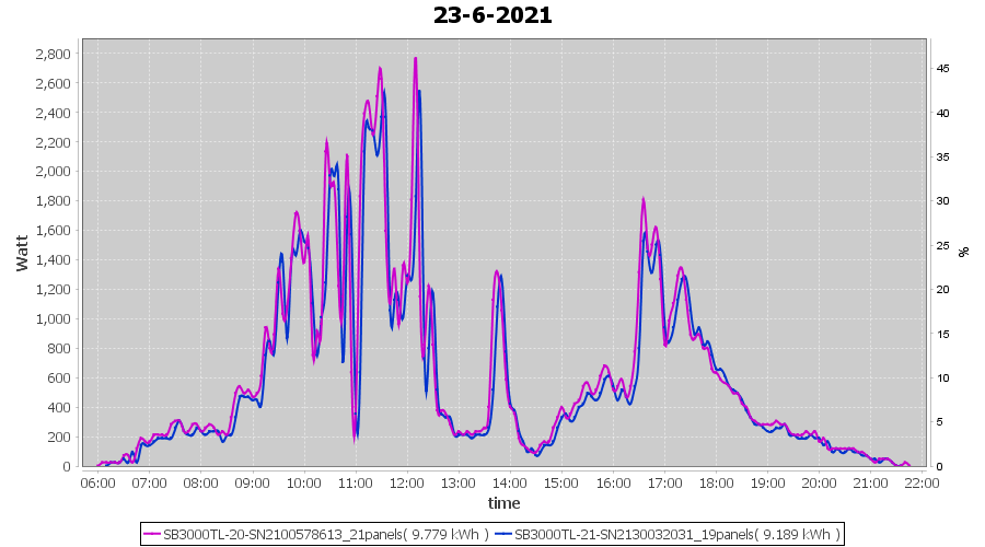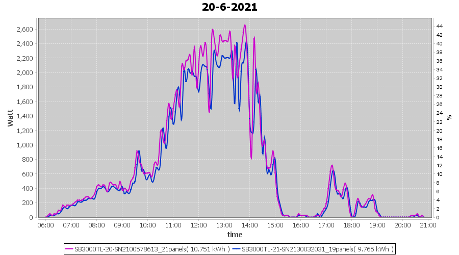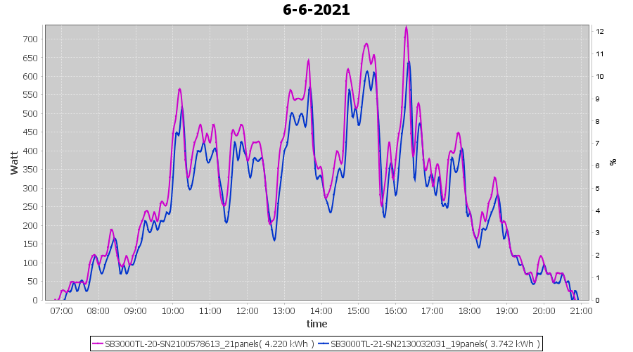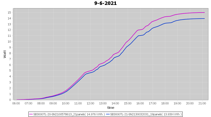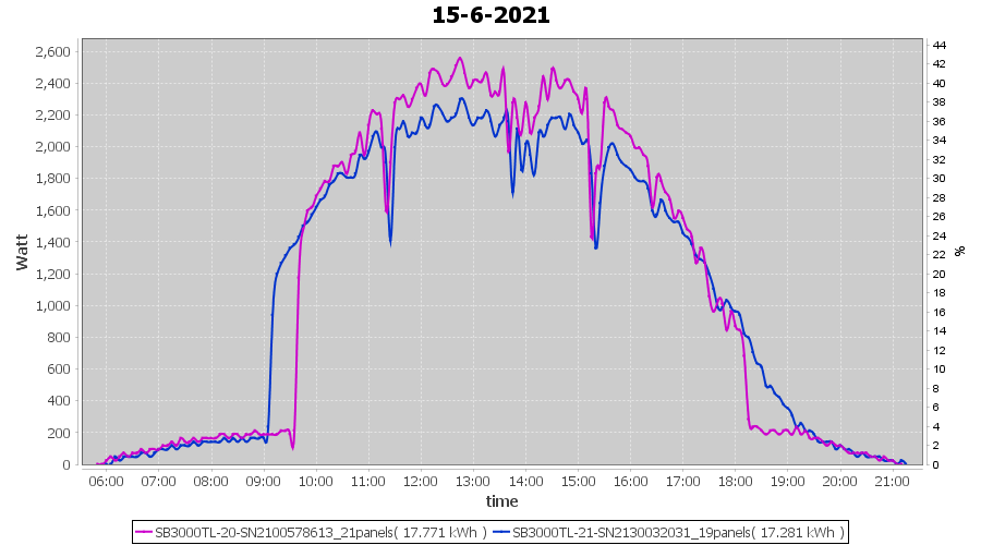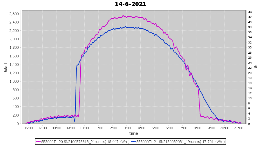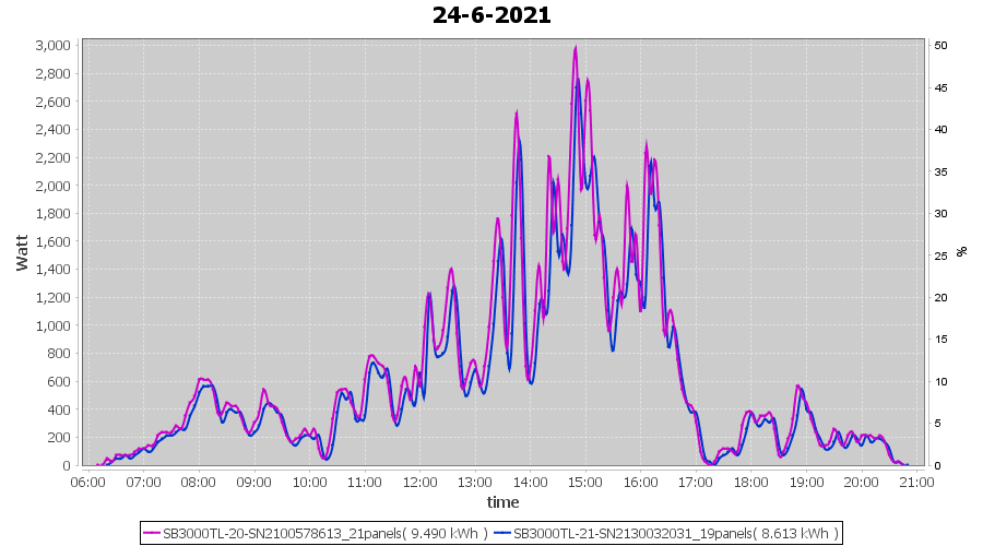 | 22-6-2021 | kWh | Sum | W/Wp | 21.179 | 6000 | 3.5 | 9.795 | € 7.61 | 2.7 |