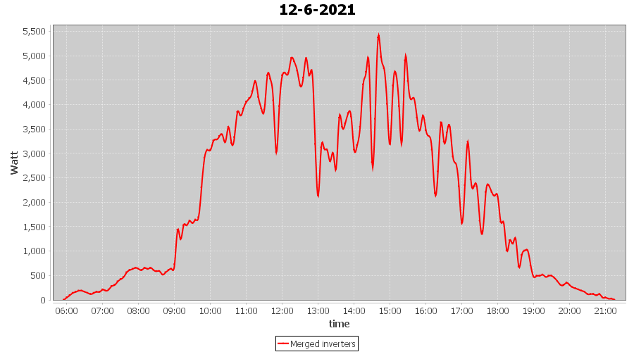 | 12-6-2021 | kWh | Sum | W/Wp | 33.319 | 6000 | 5.6 | 15.410 | € 11.98 | 4.3 |