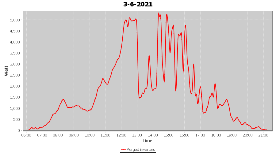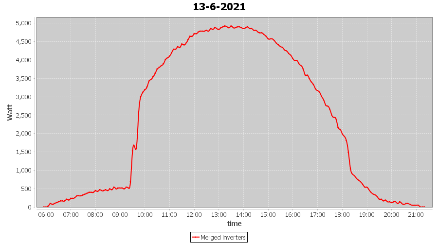| 13-6-2021 | kWh | Sum | W/Wp | 37.040 | 6000 | 6.2 | 17.131 | € 13.32 | 4.8 |