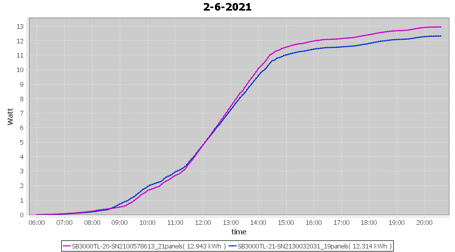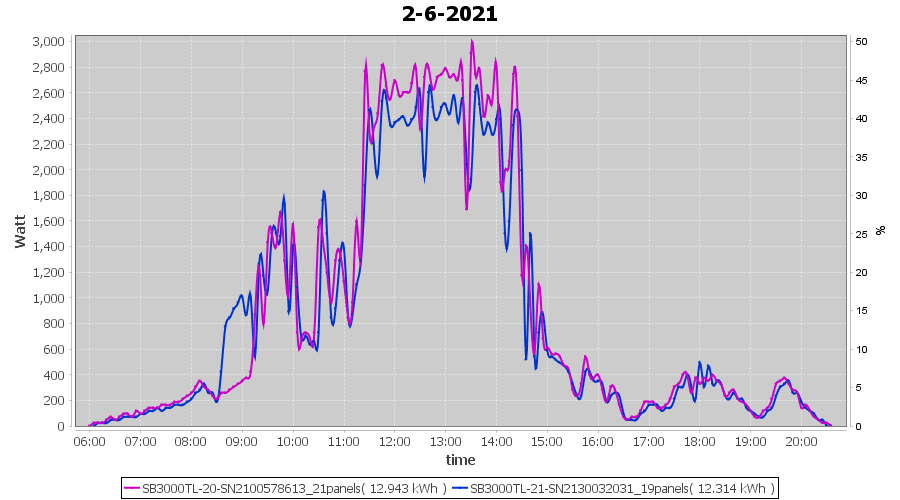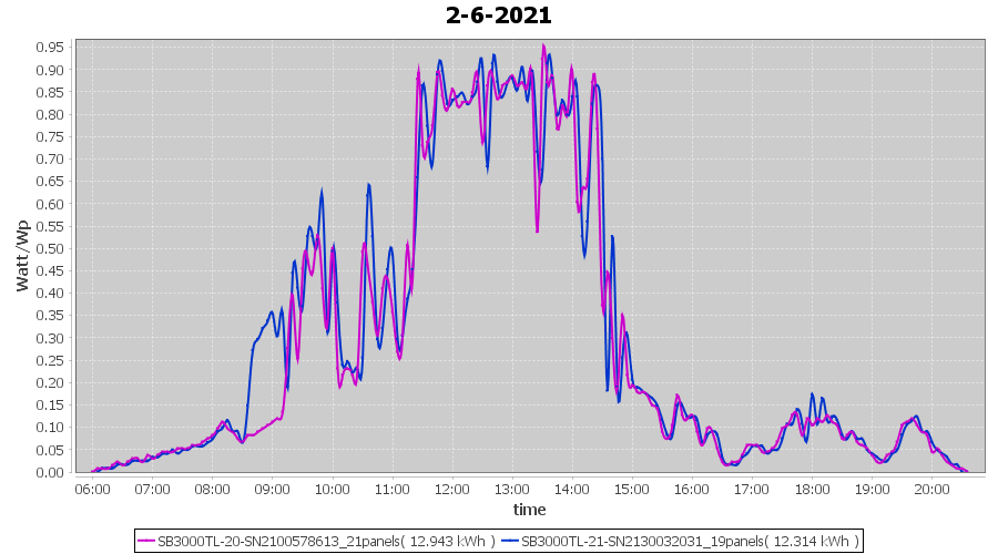| 2-6-2021 | kWh | Sum | W/Wp | 25.257 | 6000 | 4.2 | 11.681 | € 9.08 | 3.3 |