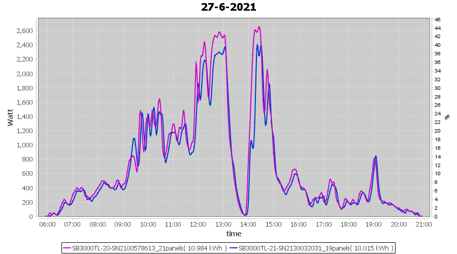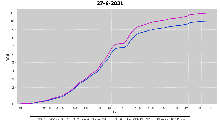 | 27-6-2021 | kWh | Sum | W/Wp | 20.999 | 6000 | 3.5 | 9.712 | € 7.55 | 2.7 |