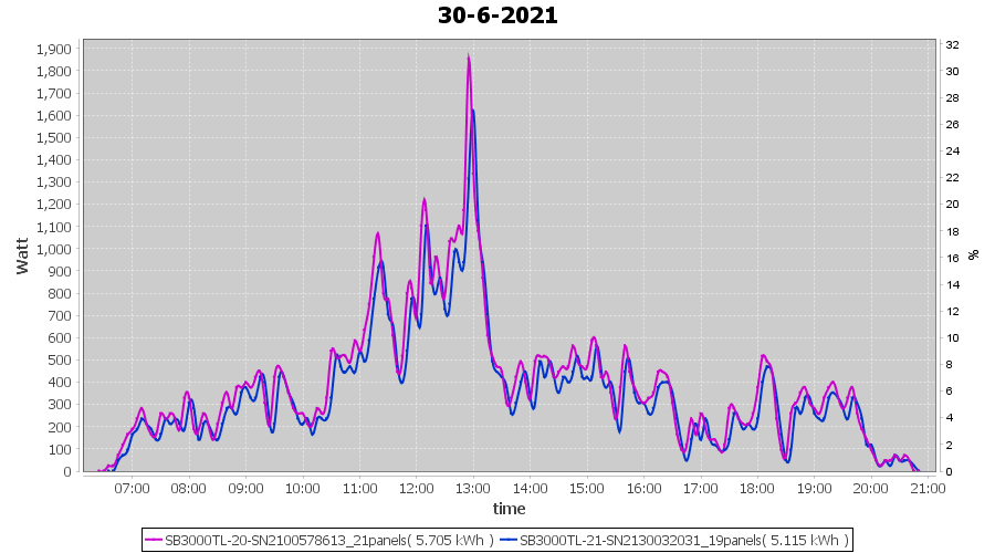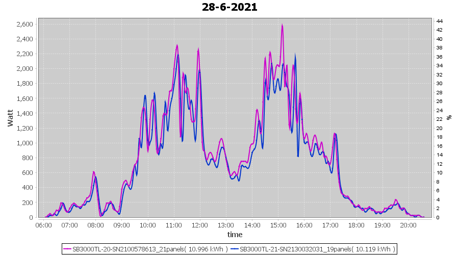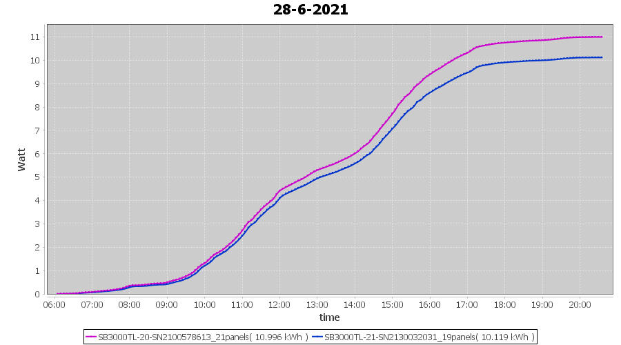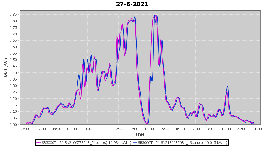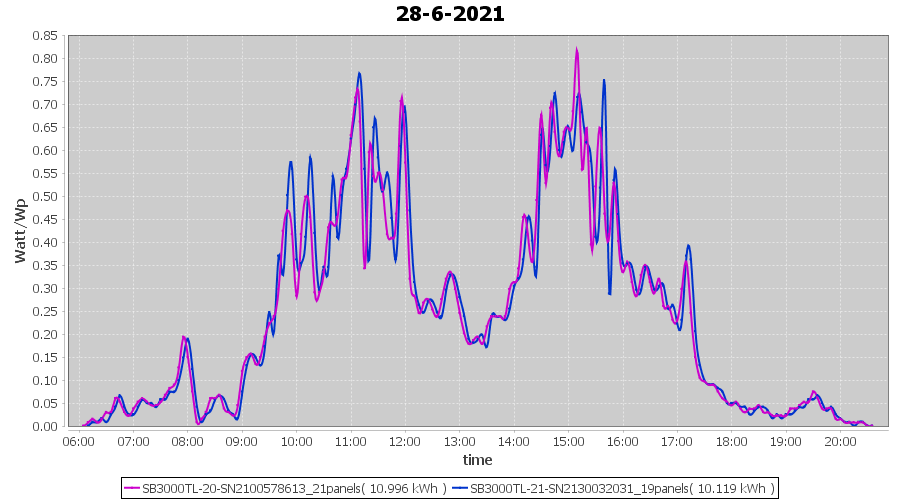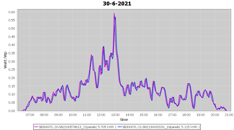 | 28-6-2021 | kWh | Sum | W/Wp | 21.115 | 6000 | 3.5 | 9.766 | € 7.59 | 2.7 |