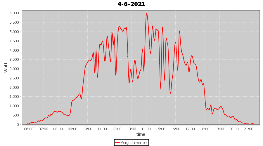 | 4-6-2021 | kWh | Sum | W/Wp | 34.579 | 6000 | 5.8 | 15.993 | € 12.43 | 4.5 |