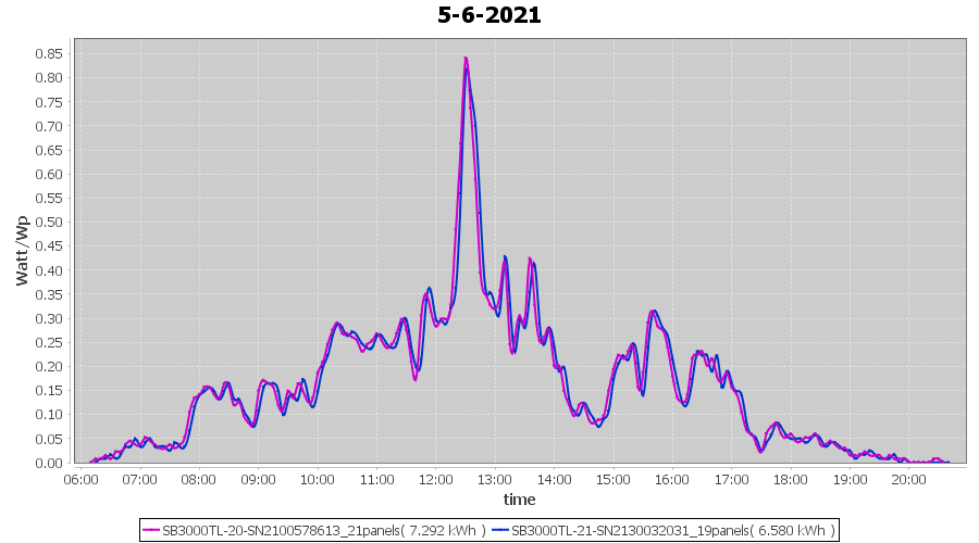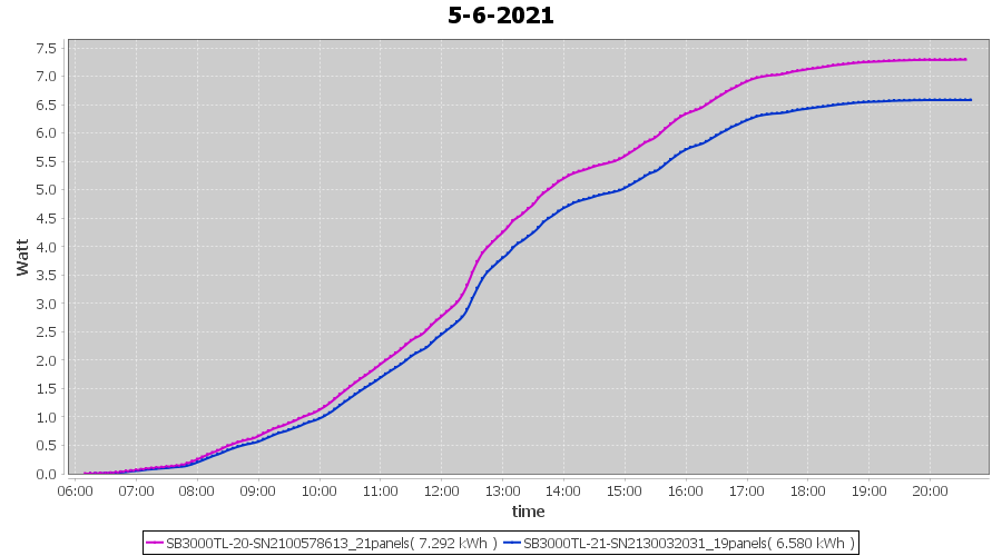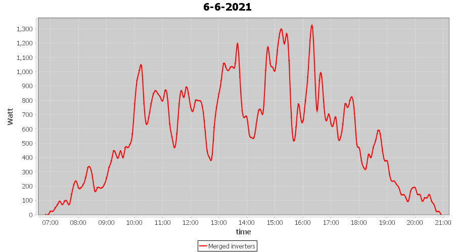 | 6-6-2021 | kWh | Sum | W/Wp | 7.962 | 6000 | 1.3 | 3.682 | € 2.86 | 1.0 |
