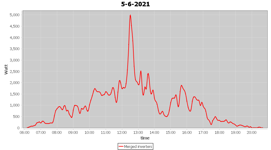 | 5-6-2021 | kWh | Sum | W/Wp | 13.872 | 6000 | 2.3 | 6.416 | € 4.99 | 1.8 |