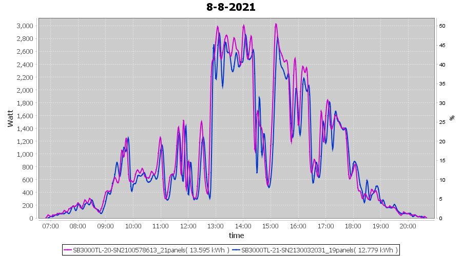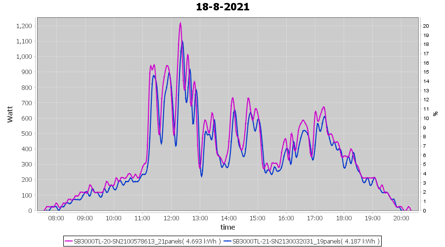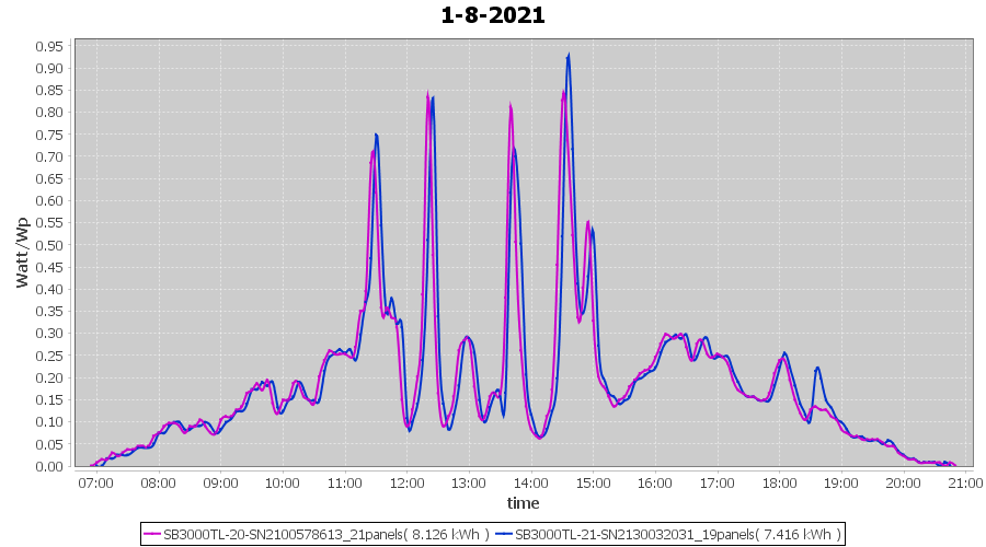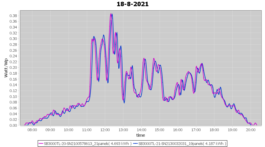 | 18-8-2021 | kWh | Sum | W/Wp | 8.880 | 6000 | 1.5 | 4.107 | € 3.19 | 1.3 |
