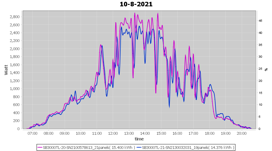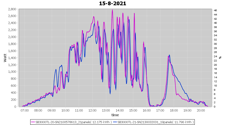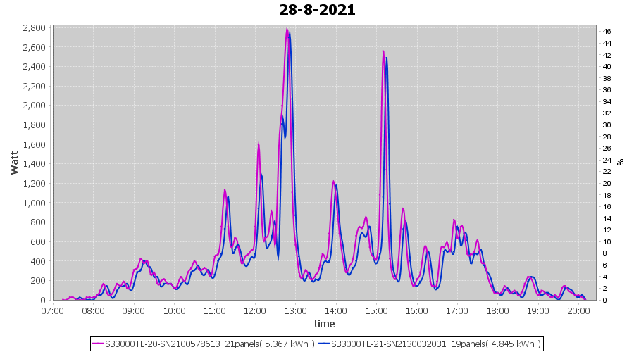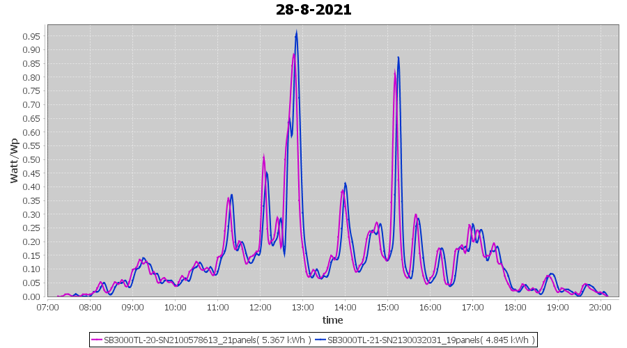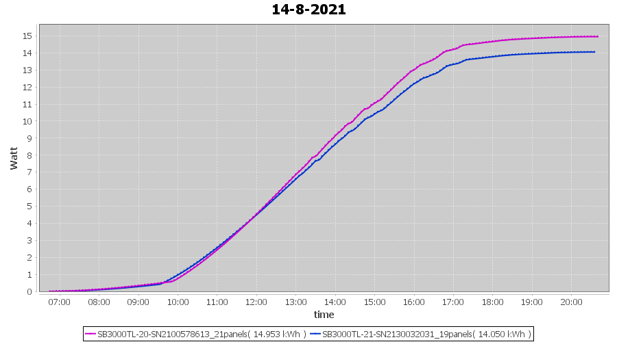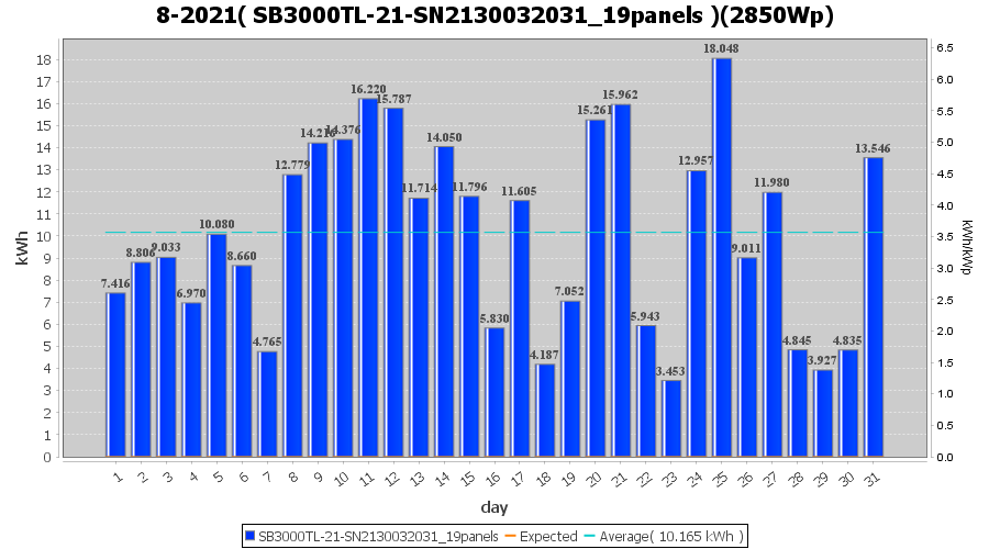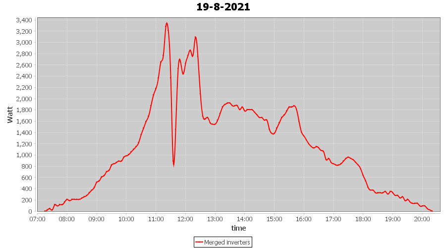 | 19-8-2021 | kWh | Sum | W/Wp | 14.835 | 6000 | 2.5 | 6.861 | € 5.33 | 2.2 |
