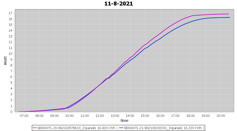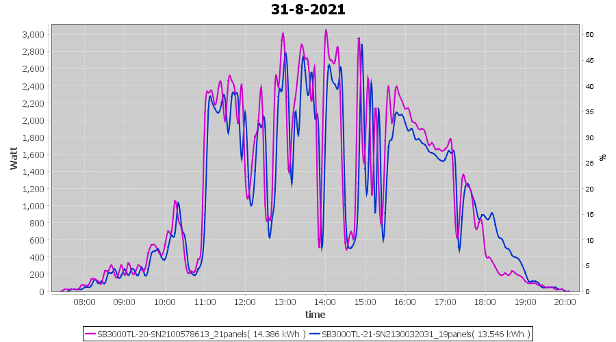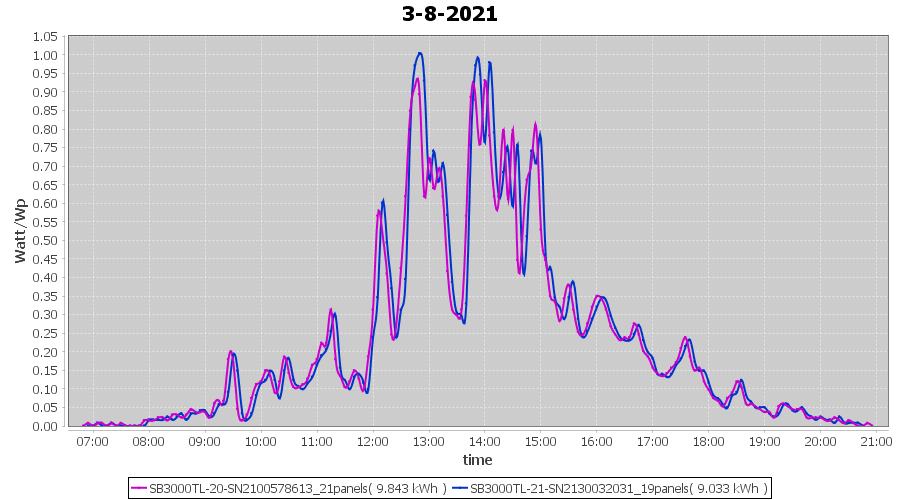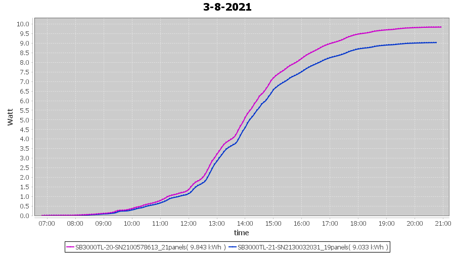 | 3-8-2021 | kWh | Sum | W/Wp | 18.876 | 6000 | 3.1 | 8.730 | € 6.79 | 2.8 |
