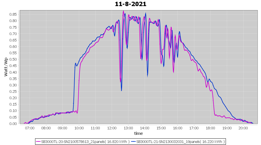 | 11-8-2021 | kWh | Sum | W/Wp | 33.040 | 6000 | 5.5 | 15.281 | € 11.88 | 4.9 |