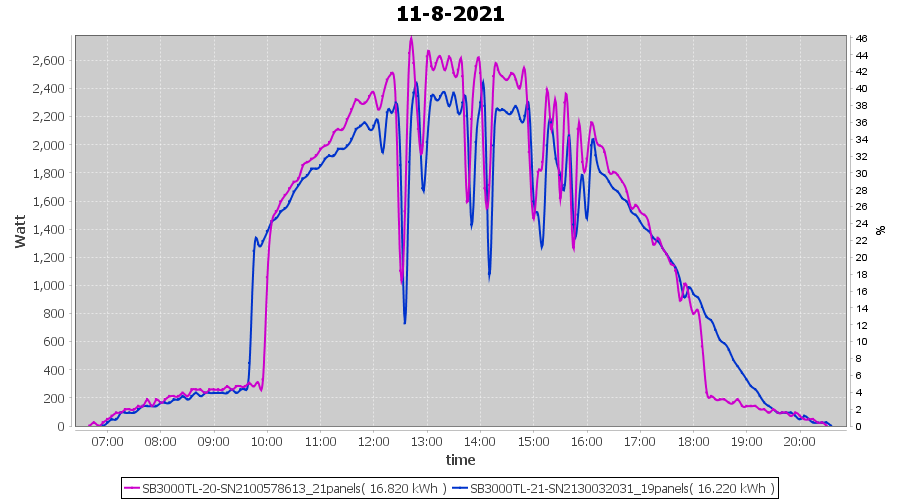 | SB3000TL-20-SN2100578613_21panels | 3150 | 374.850 | 119.0 | 353.021 | 112.1 | 94.2% | 353.021 | 112.1 | 94.2% |