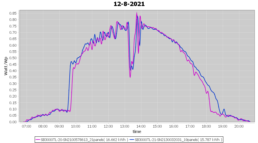 | 12-8-2021 | kWh | Sum | W/Wp | 32.449 | 6000 | 5.4 | 15.008 | € 11.67 | 4.9 |
