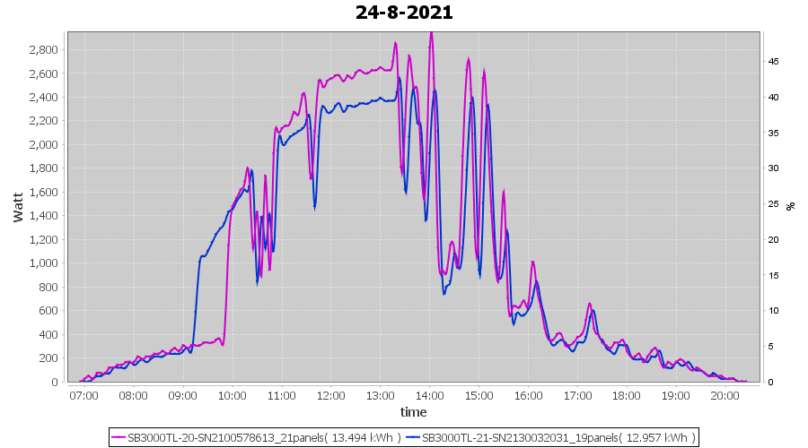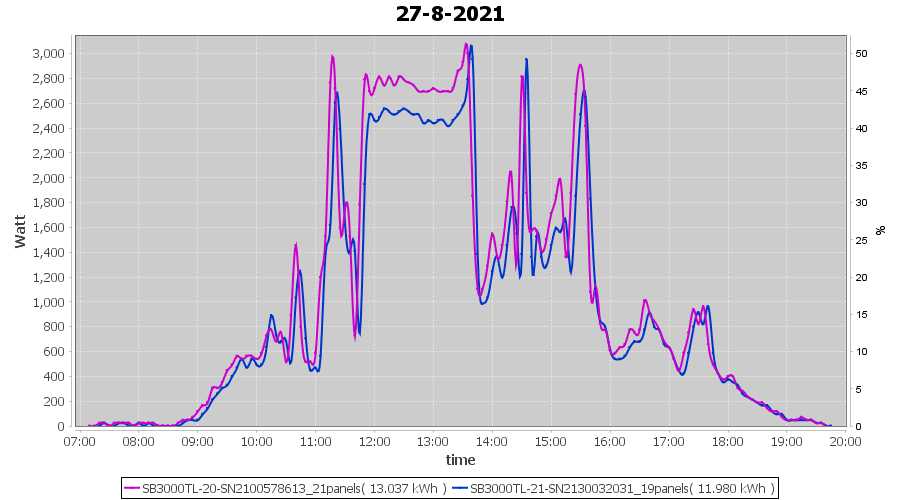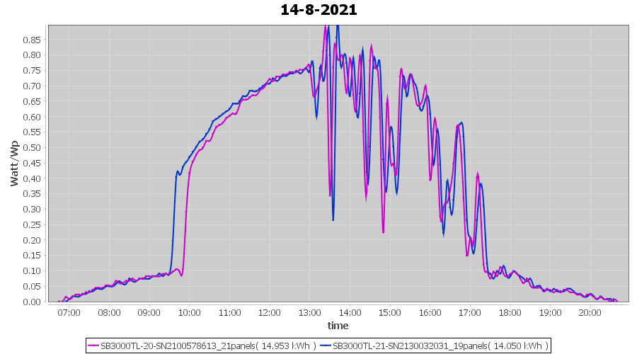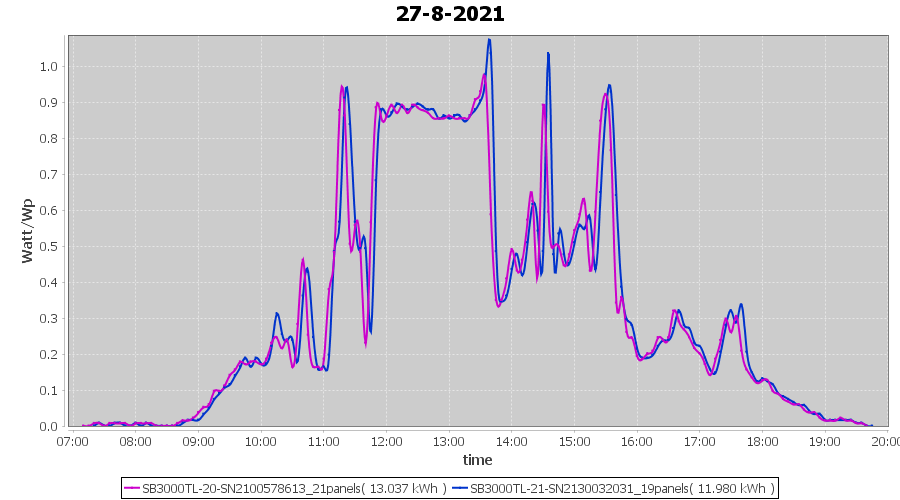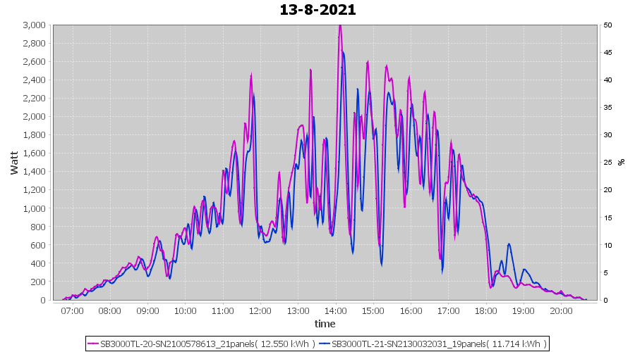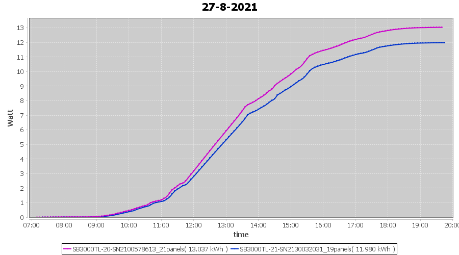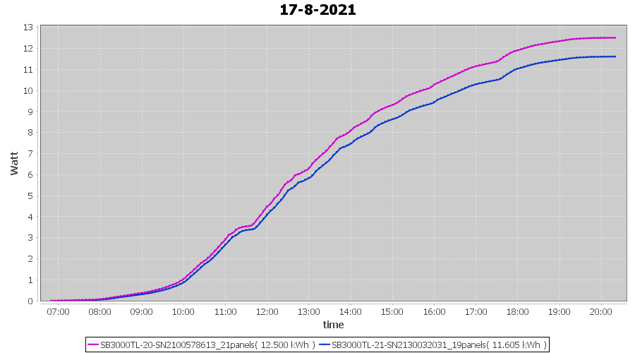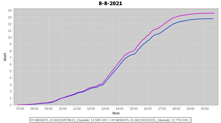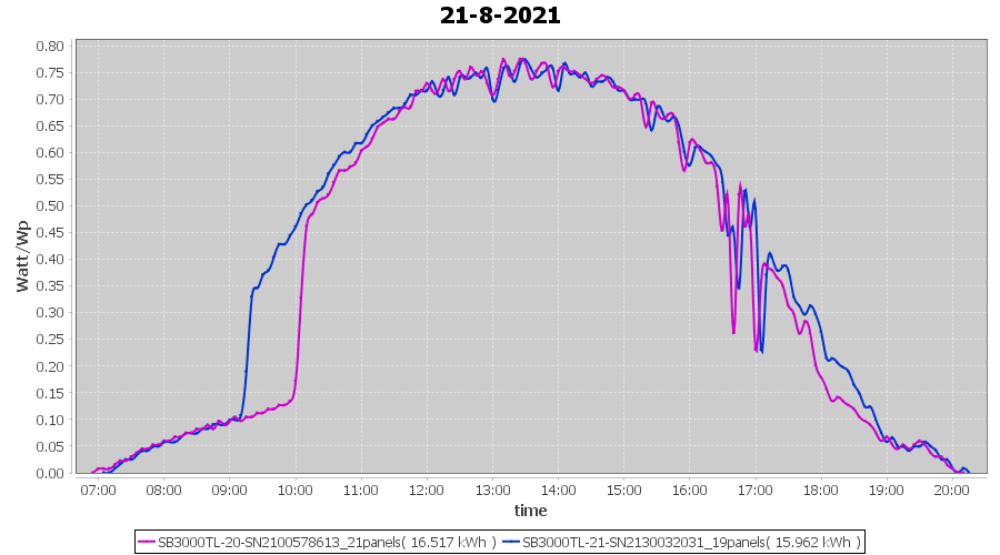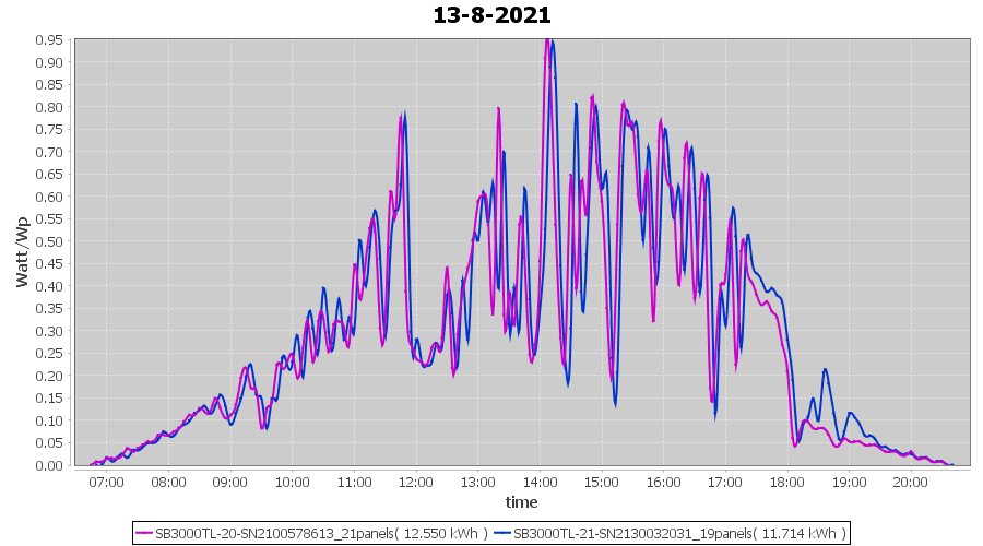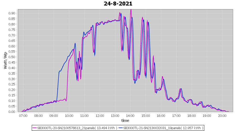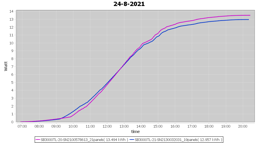 | 13-8-2021 | kWh | Sum | W/Wp | 24.264 | 6000 | 4.0 | 11.222 | € 8.72 | 3.6 |