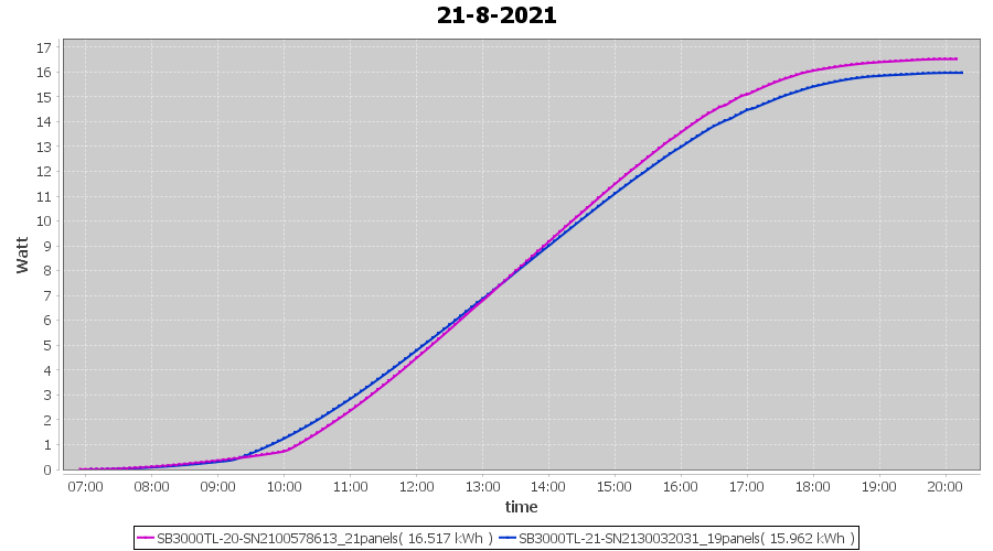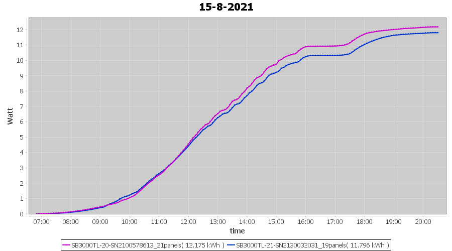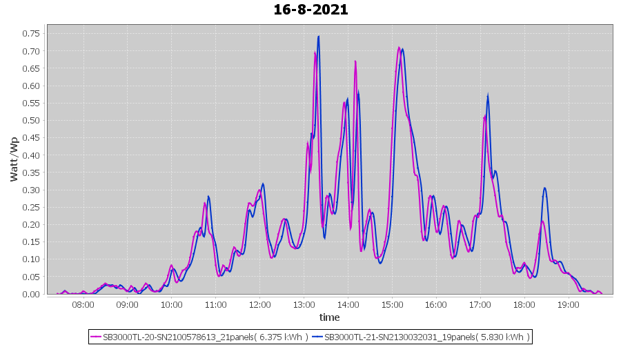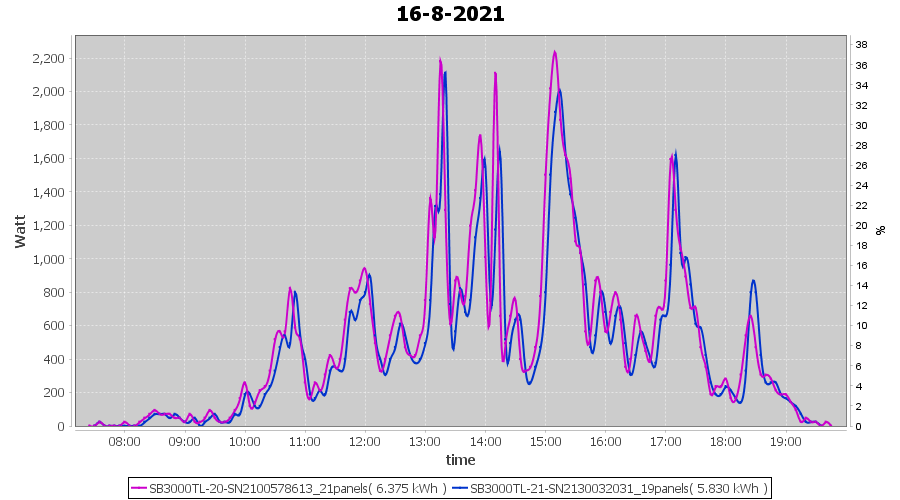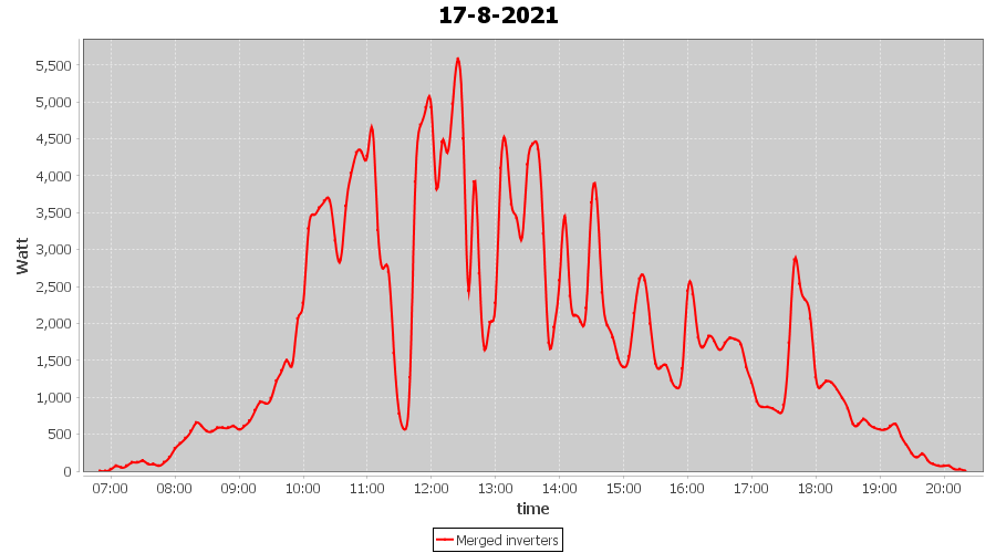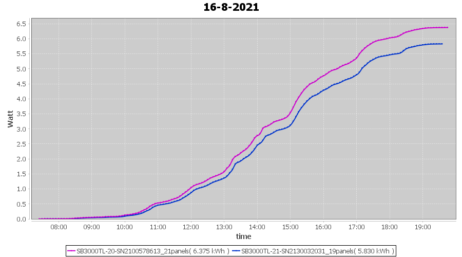 | 16-8-2021 | kWh | Sum | W/Wp | 12.205 | 6000 | 2.0 | 5.645 | € 4.39 | 1.8 |