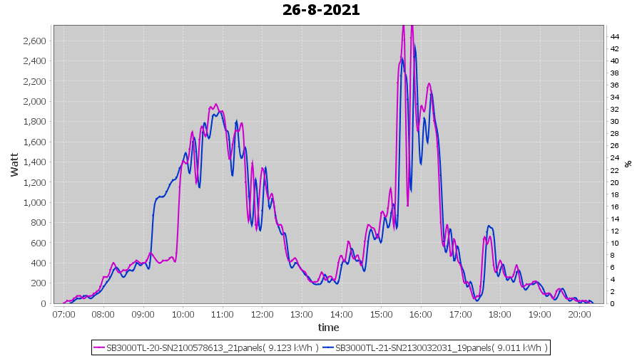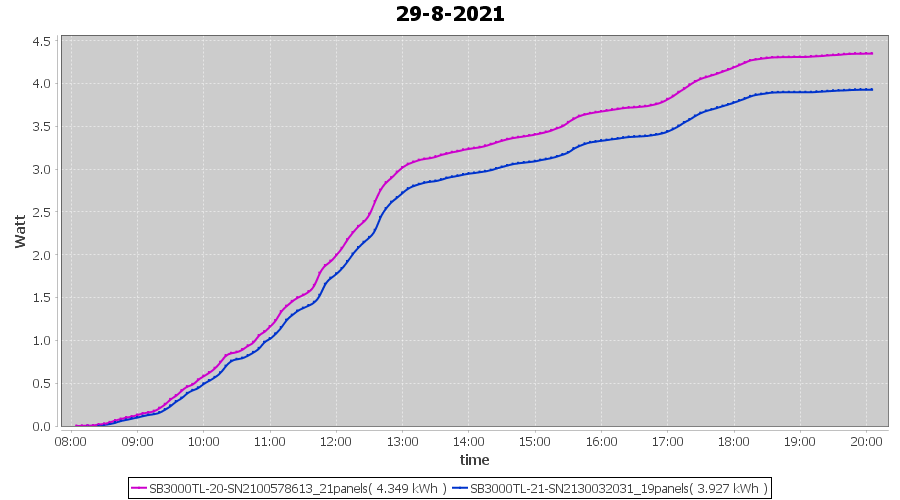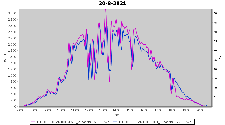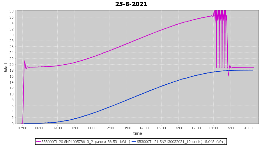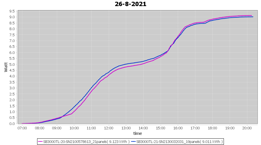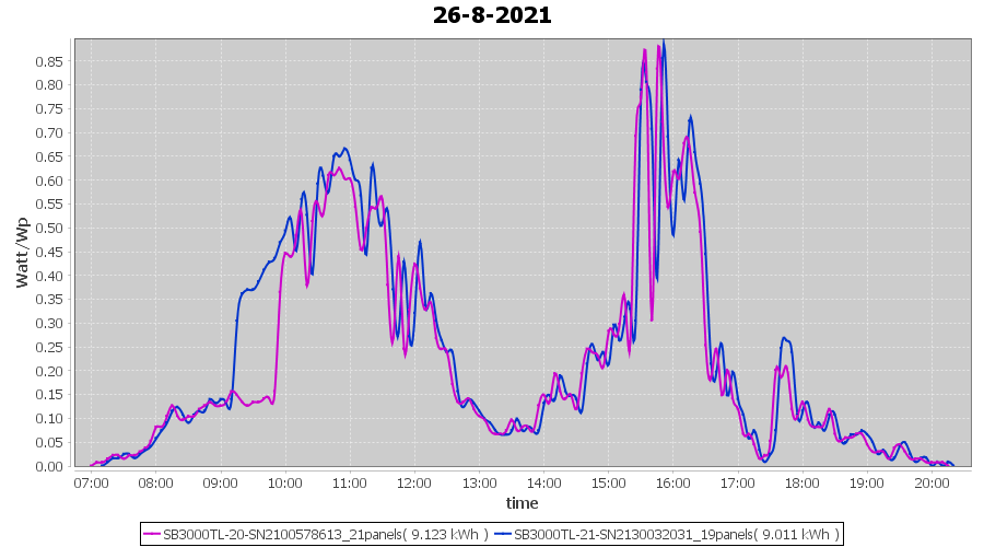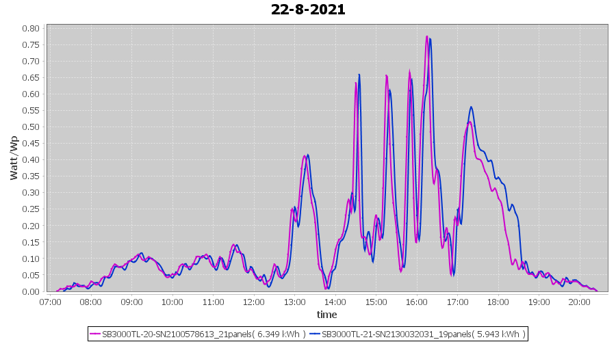 | 26-8-2021 | kWh | Sum | W/Wp | 18.134 | 6000 | 3.0 | 8.387 | € 6.52 | 2.7 |