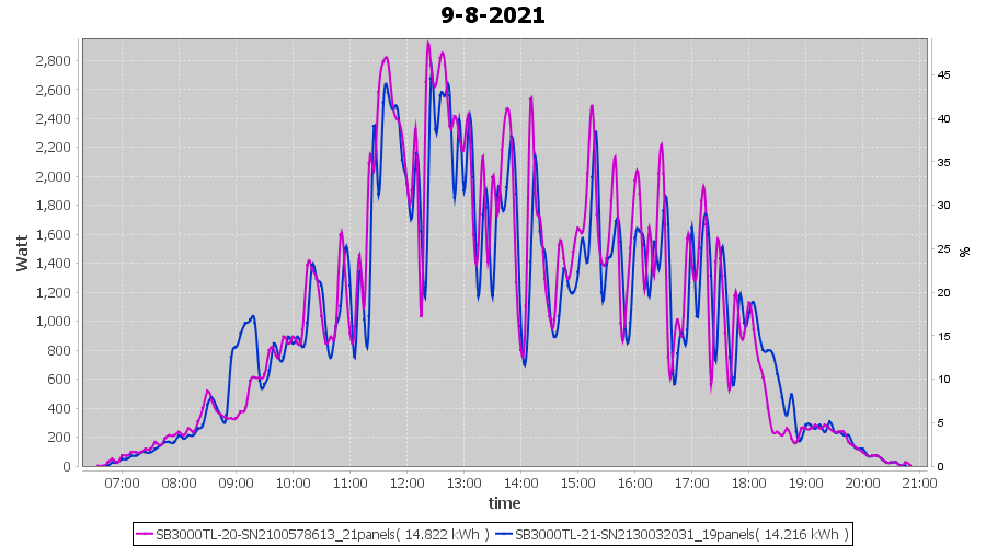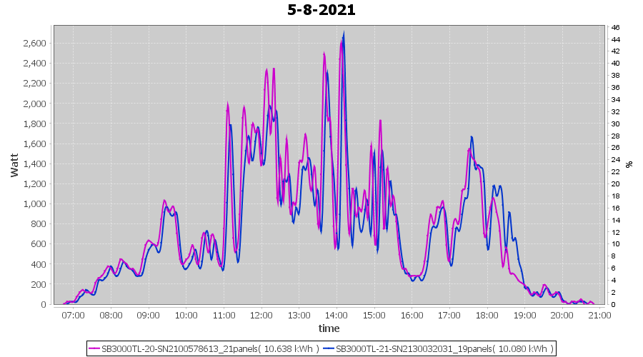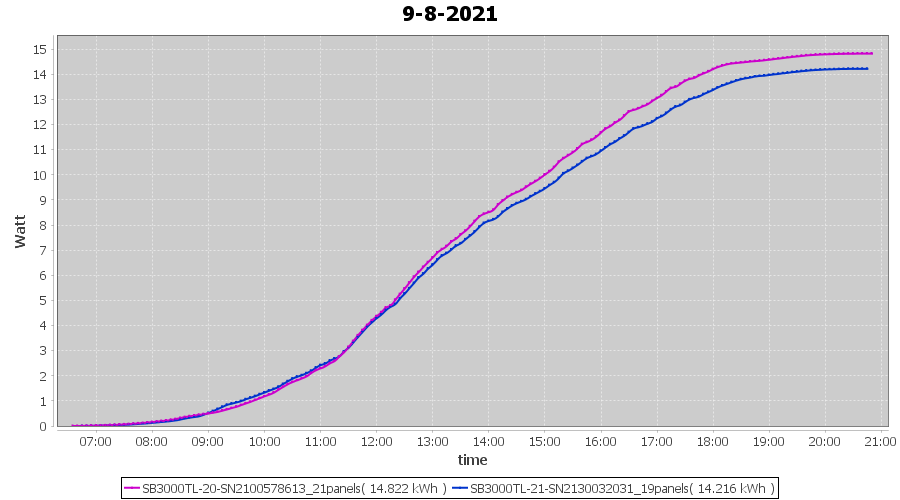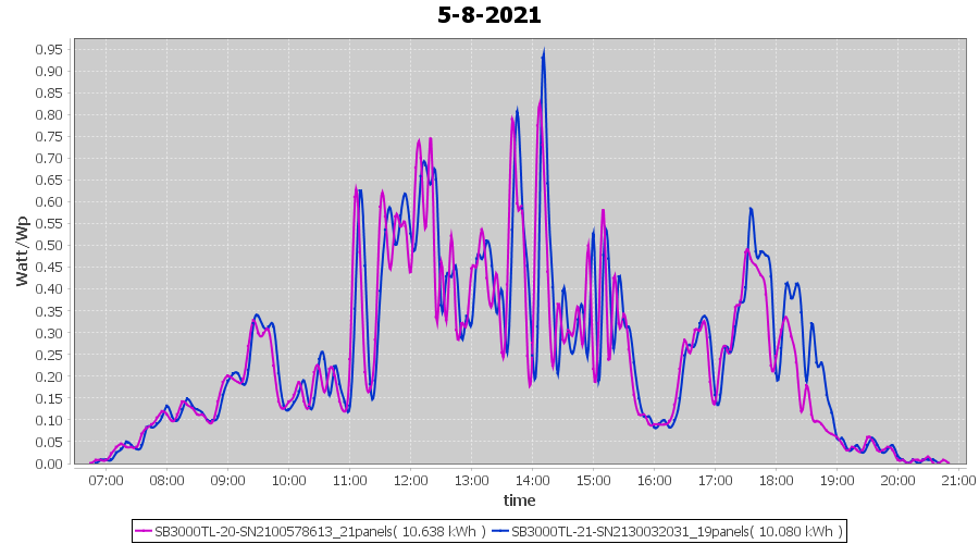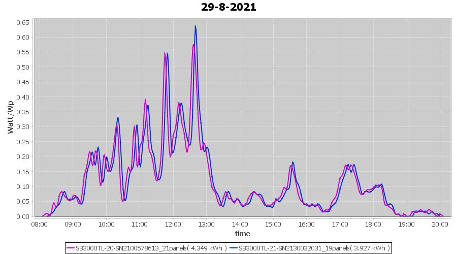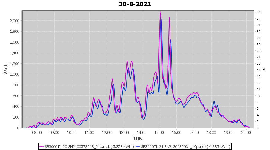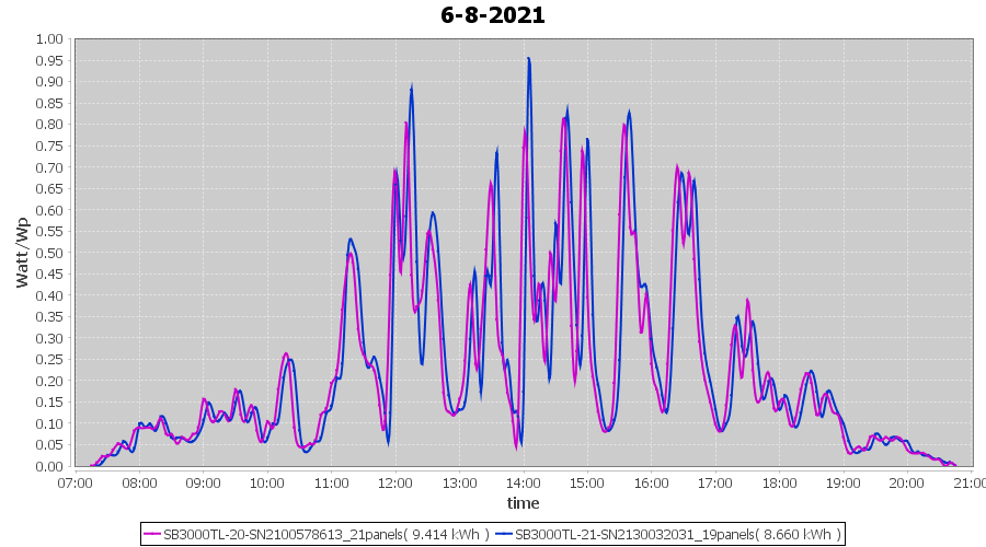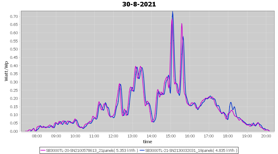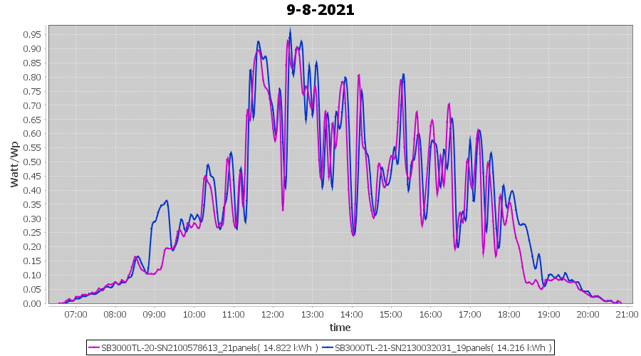 | 9-8-2021 | kWh | Sum | W/Wp | 29.038 | 6000 | 4.8 | 13.430 | € 10.44 | 4.3 |