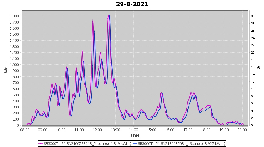 | 29-8-2021 | kWh | Sum | W/Wp | 8.276 | 6000 | 1.4 | 3.828 | € 2.98 | 1.2 |