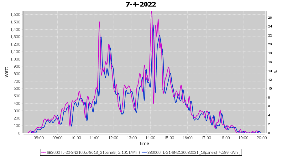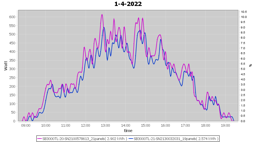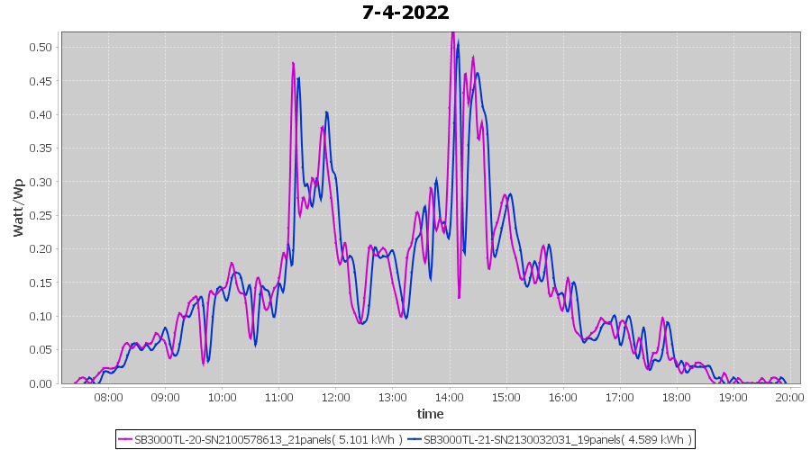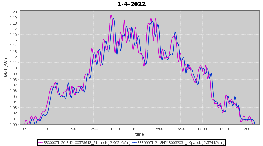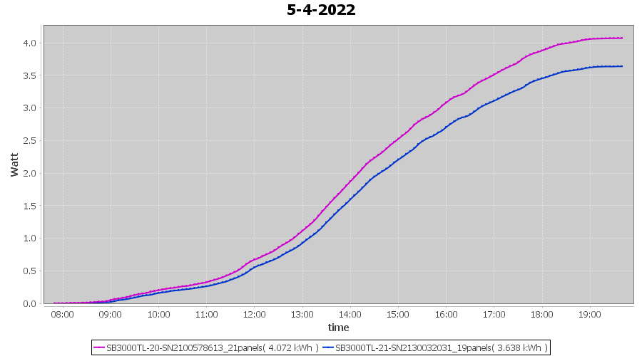 | 7-4-2022 | kWh | Sum | W/Wp | 9.690 | 6000 | 1.6 | 4.482 | € 3.52 | 1.3 |