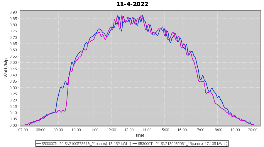 | 11-4-2022 | kWh | Sum | W/Wp | 35.237 | 6000 | 5.9 | 16.297 | € 12.78 | 4.9 |