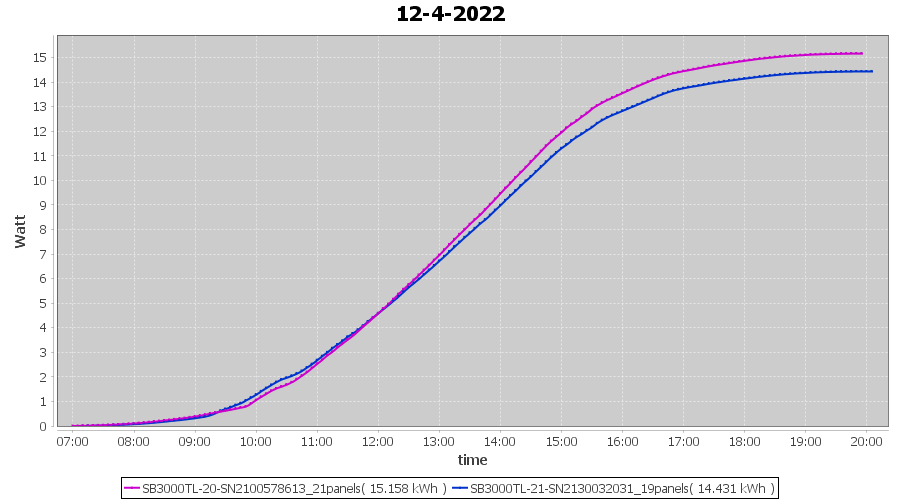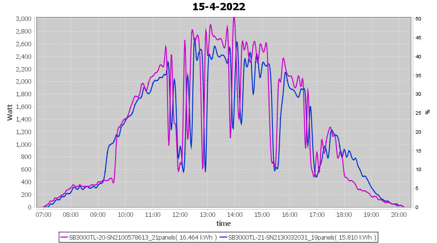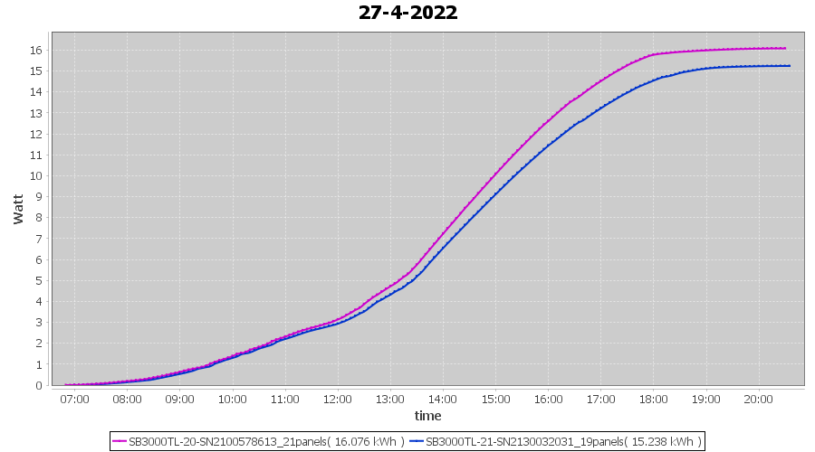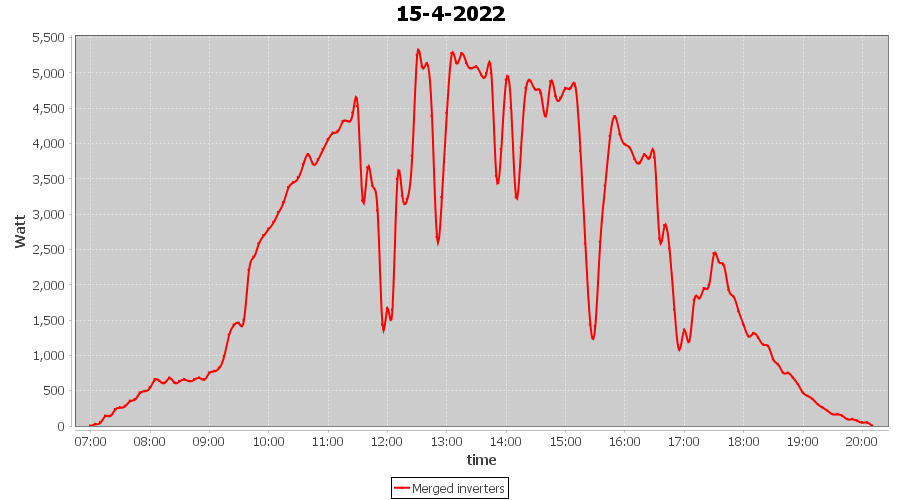 | 15-4-2022 | kWh | Sum | W/Wp | 32.274 | 6000 | 5.4 | 14.927 | € 11.71 | 4.4 |