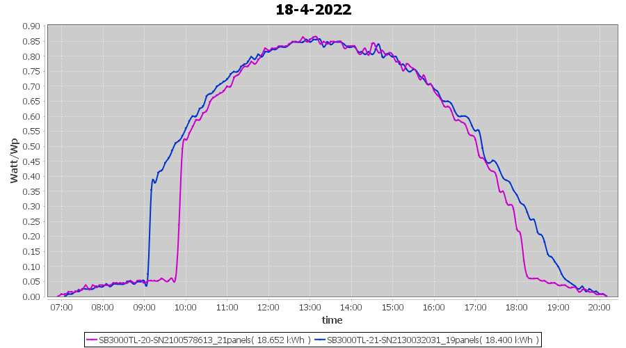 | 18-4-2022 | kWh | Sum | W/Wp | 37.052 | 6000 | 6.2 | 17.137 | € 13.44 | 5.1 |