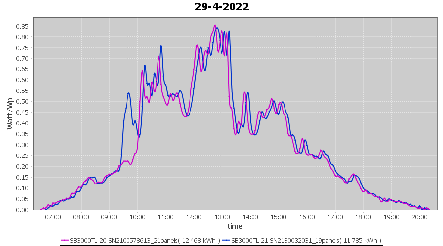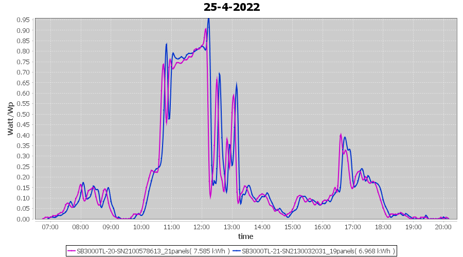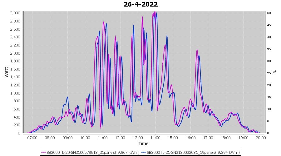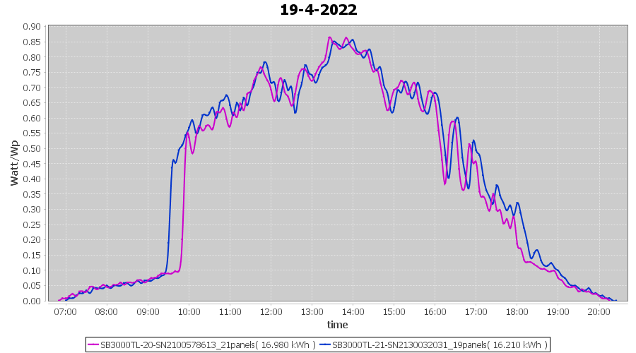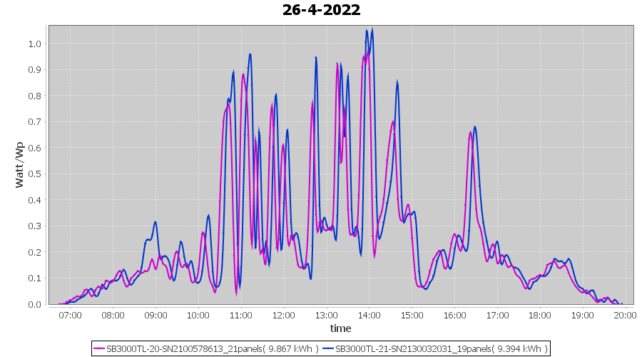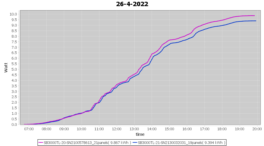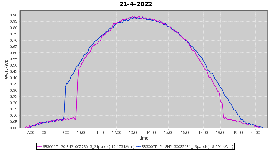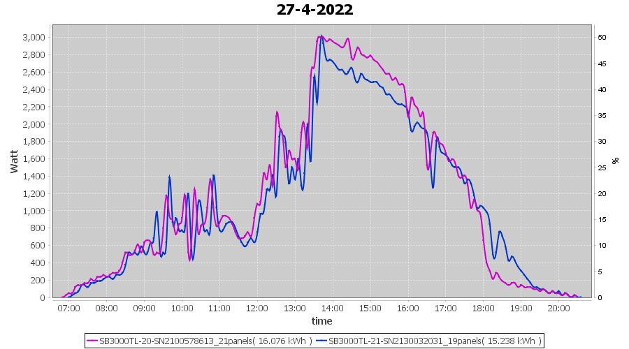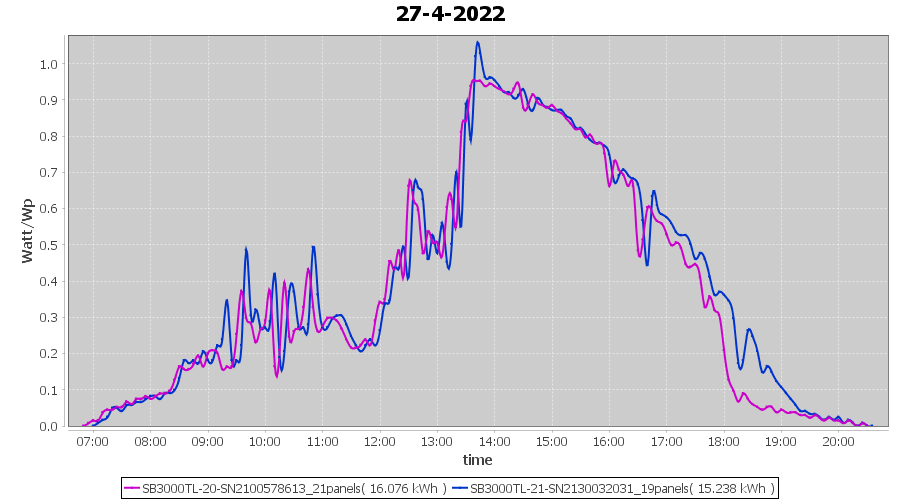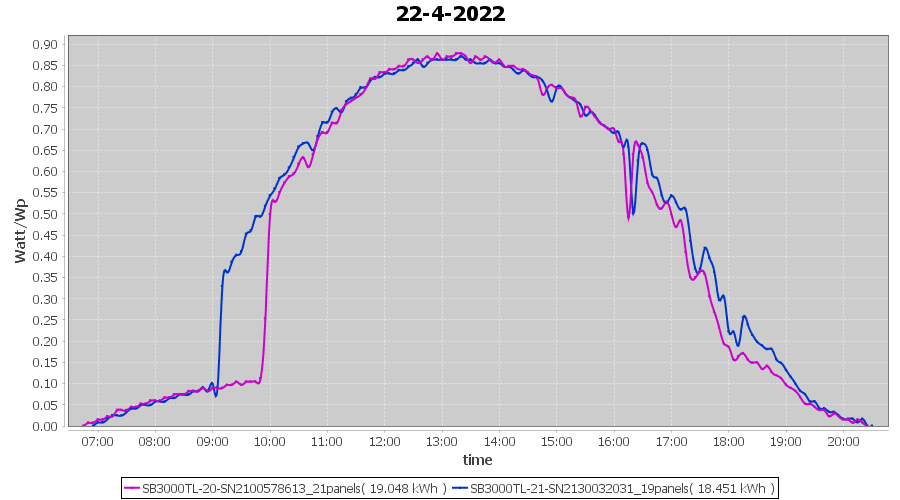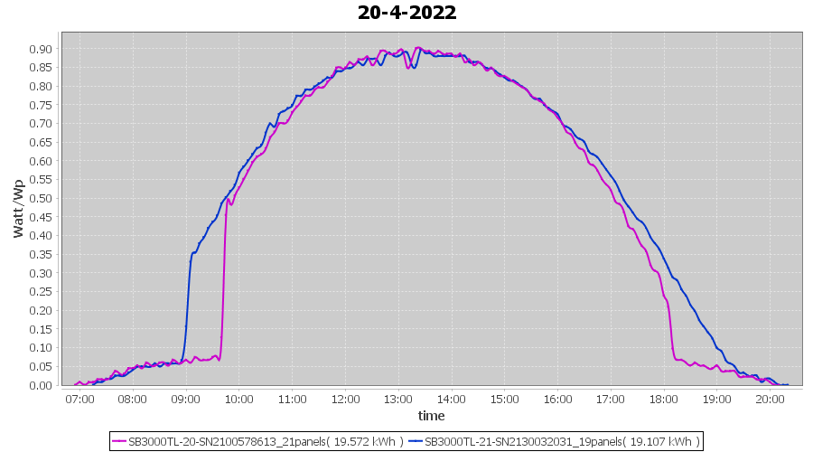 | 26-4-2022 | kWh | Sum | W/Wp | 19.261 | 6000 | 3.2 | 8.908 | € 6.99 | 2.7 |