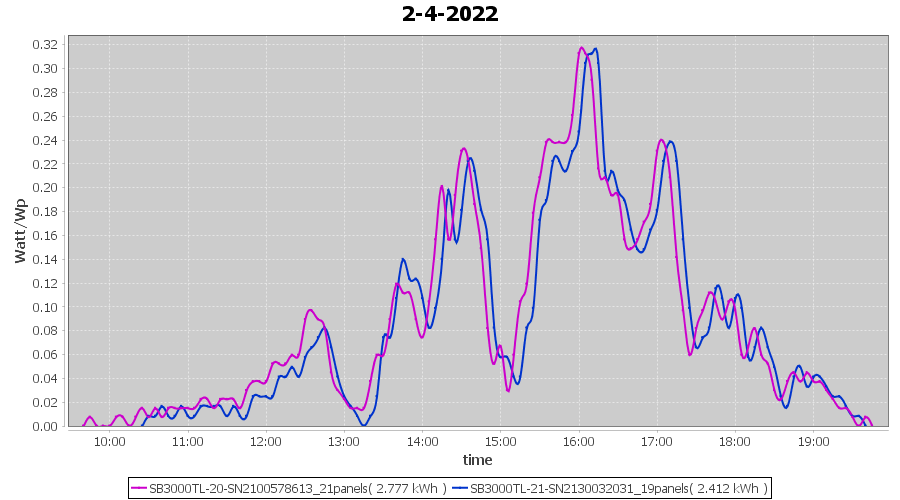 | 2-4-2022 | kWh | Sum | W/Wp | 5.189 | 6000 | 0.9 | 2.400 | € 1.88 | 0.7 |