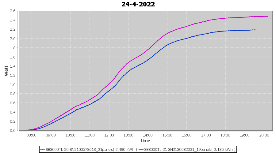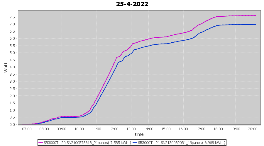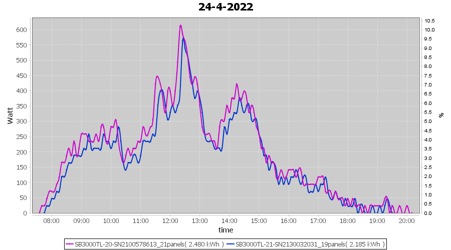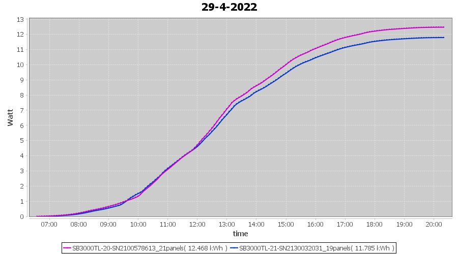 | 21-4-2022 | kWh | Sum | W/Wp | 37.864 | 6000 | 6.3 | 17.512 | € 13.73 | 5.2 |
