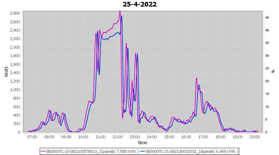 | 25-4-2022 | kWh | Sum | W/Wp | 14.553 | 6000 | 2.4 | 6.731 | € 5.28 | 2.0 |