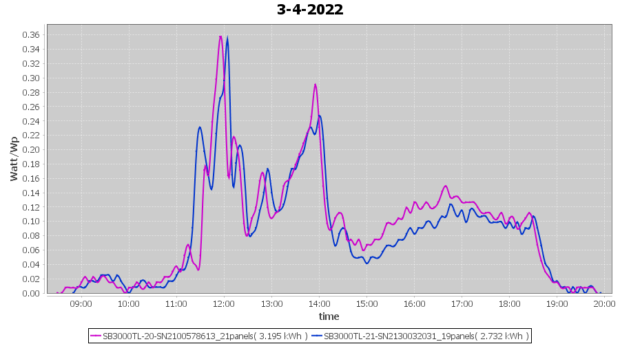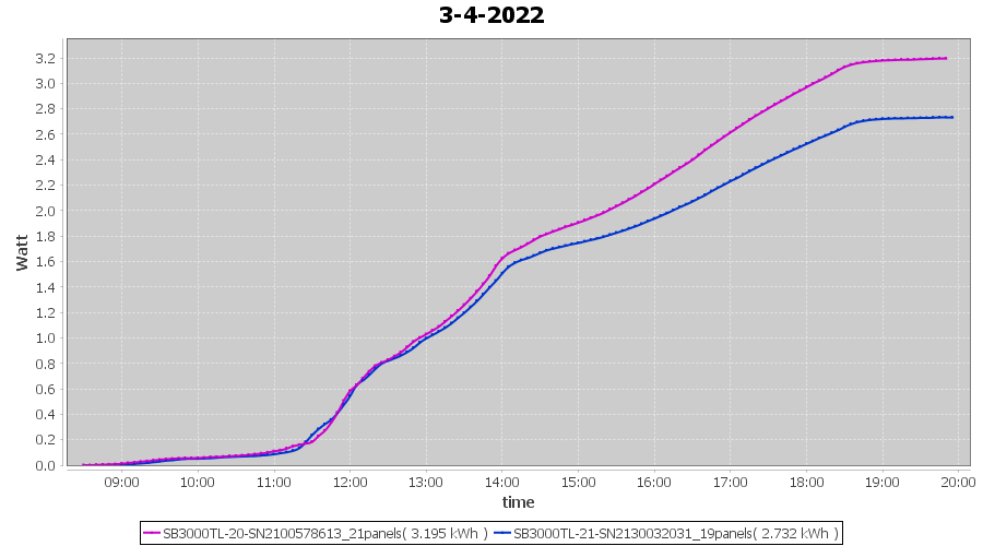 | 3-4-2022 | kWh | Sum | W/Wp | 5.927 | 6000 | 1.0 | 2.741 | € 2.15 | 0.8 |