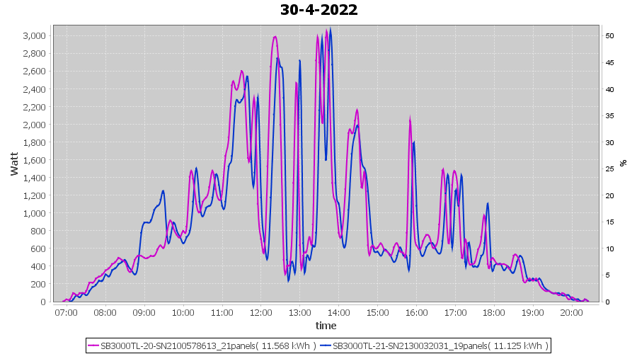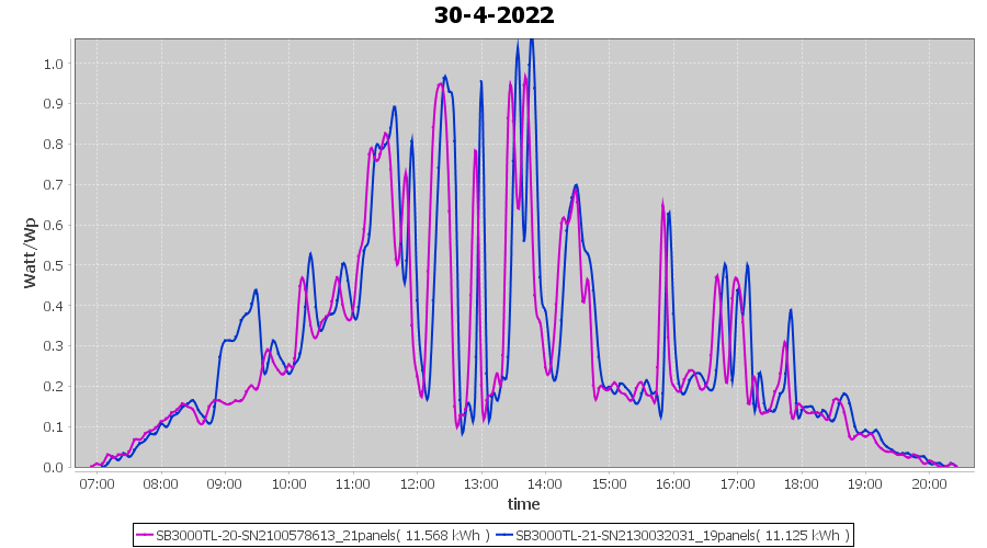 | 30-4-2022 | kWh | Sum | W/Wp | 22.693 | 6000 | 3.8 | 10.496 | € 8.23 | 3.1 |