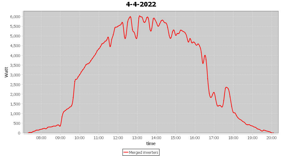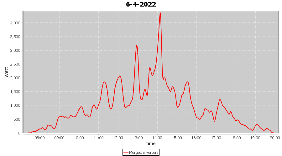 | 4-4-2022 | kWh | Sum | W/Wp | 38.104 | 6000 | 6.4 | 17.623 | € 13.82 | 5.3 |