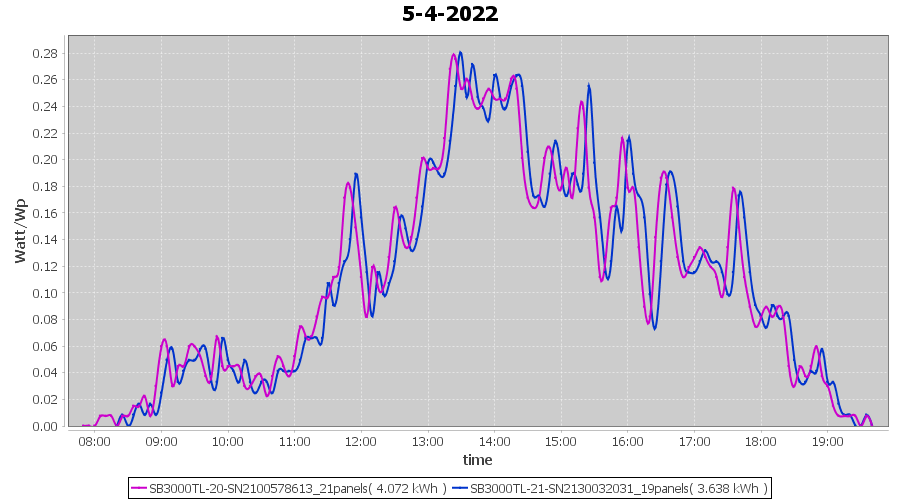 | 5-4-2022 | kWh | Sum | W/Wp | 7.710 | 6000 | 1.3 | 3.566 | € 2.80 | 1.1 |